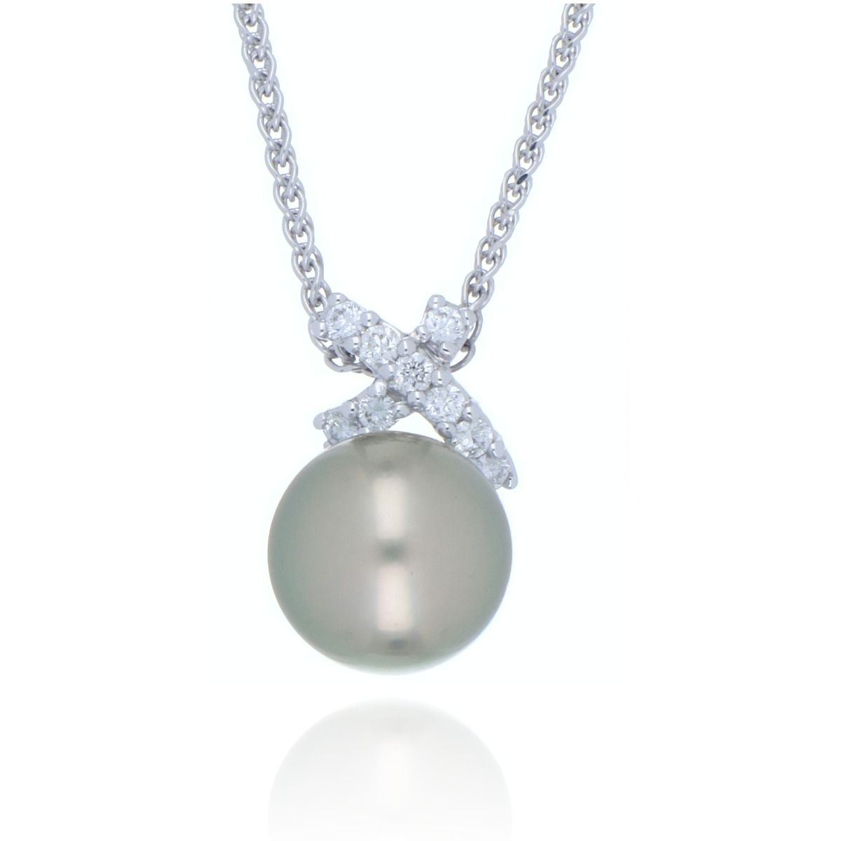 Fall in love with the gleaming depths of this beautiful Tahitian pearl. Set in 18ct white gold with a dazzling cross of diamonds above, this necklace will make you smile every time you wear it.