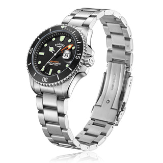 Rotary Stainless Steel Cambridge Quartz Watch with a Black Leather Strap