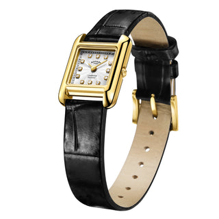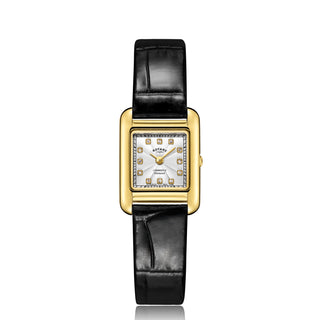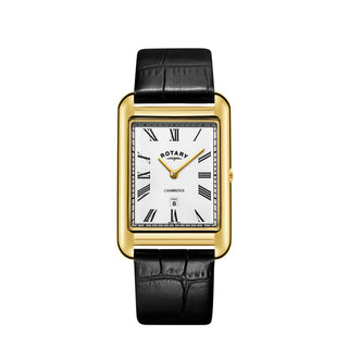 Rotary Cambridge Yellow Gold Plated Quartz Watch with a Black Leather Strap
