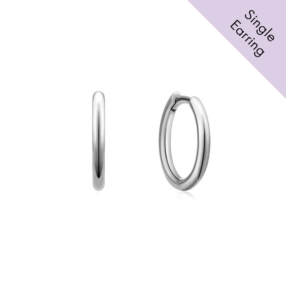 This 14ct white gold huggie hoop is plain and simple for a timelessly classic look, finished with a hinge fastening.