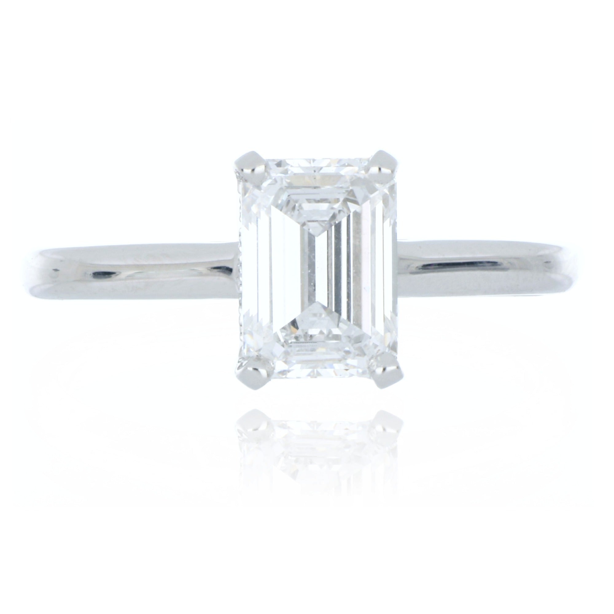 A modern interpretation of a classic, this emerald-cut solitaire is beautifully set in platinum, featuring a refined four-claw setting that highlights the diamond’s clean lines and timeless appeal. Crafted for lasting elegance, it’s a piece that embodies understated luxury and contemporary sophistication.