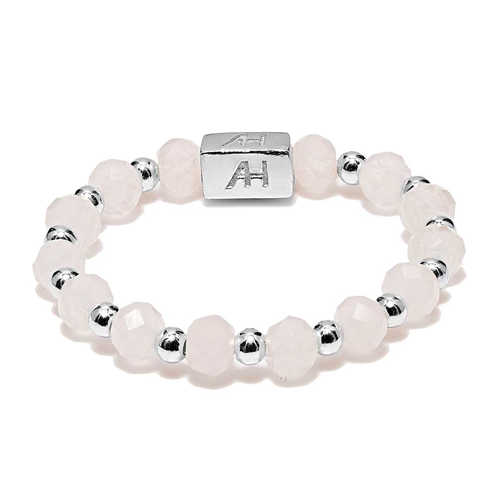 A beautiful ring that would make a gorgeous romantic gift. Annie Haak's Hebe Rose ring has been made in 925 Sterling Silver beads with Czech Glass Crystal in a gorgeous pink colour. The ring has been hand-threaded on high-quality jewellery elastic in the UK with a stretch fit that will sit comfortably around your finger.