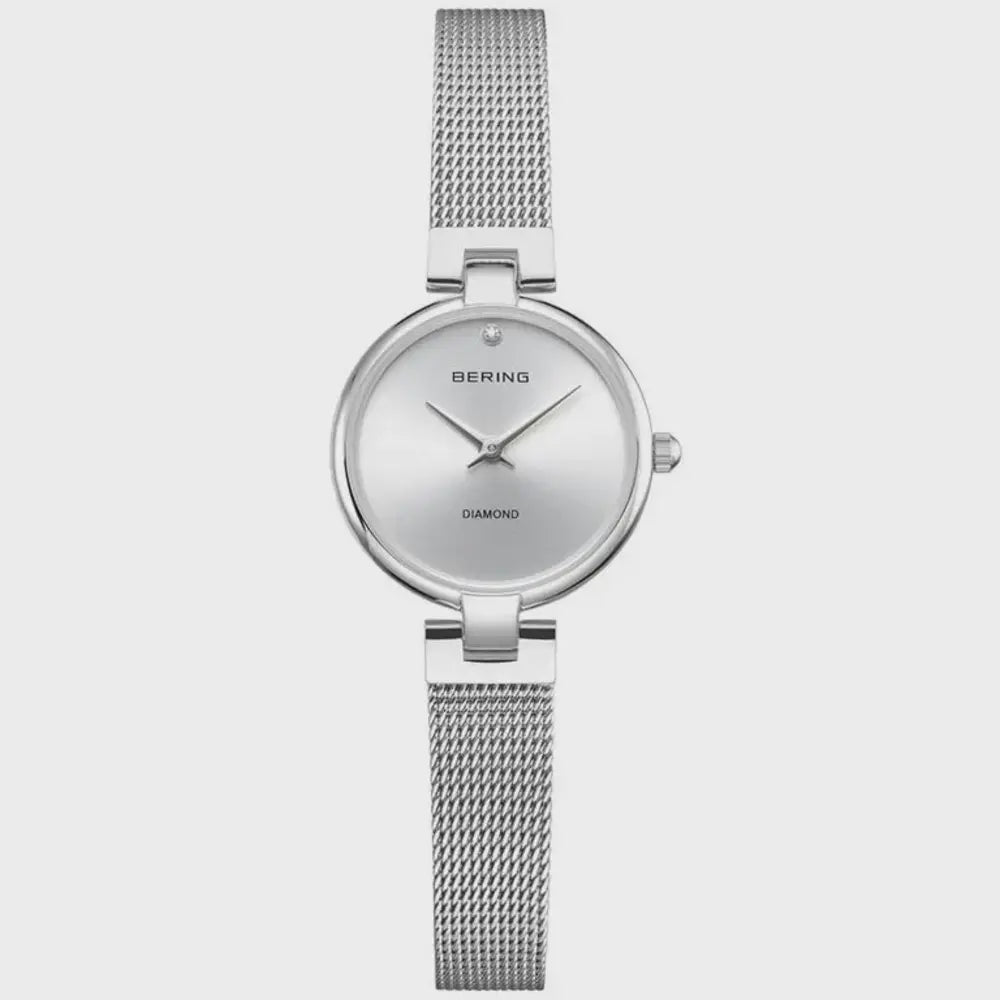 This ladies’ watch from the Classic Collection embodies subtle luxury with a polished stainless steel case measuring 24 mm. The silver dial features a genuine diamond at 12 o’clock, shining bright without any extra fuss. Two sleek silver-tone hands glide gracefully, protected by flat sapphire crystal for long-lasting clarity. The stainless steel Milanese strap completes the elegant, modern look with seamless comfort and style. Secure with a fold-over clasp and powered by precise quartz movement, it’s water-resistant to 3 ATM—everyday elegance with a dazzling twist.