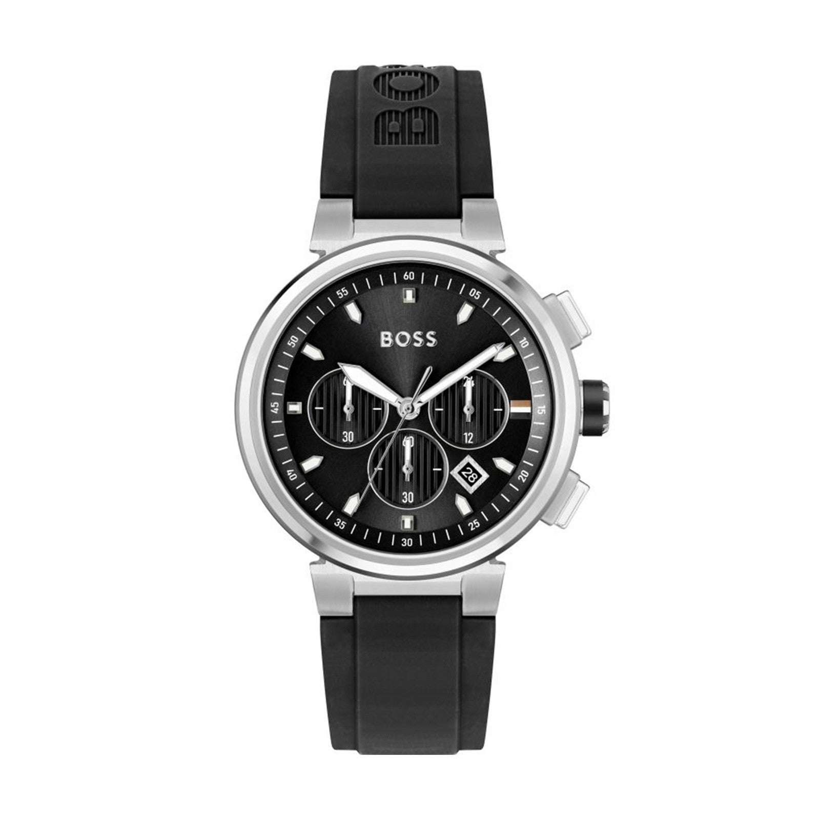 Boss 44mm One Black Chronograph Quartz Watch with a Black Rubber Strap