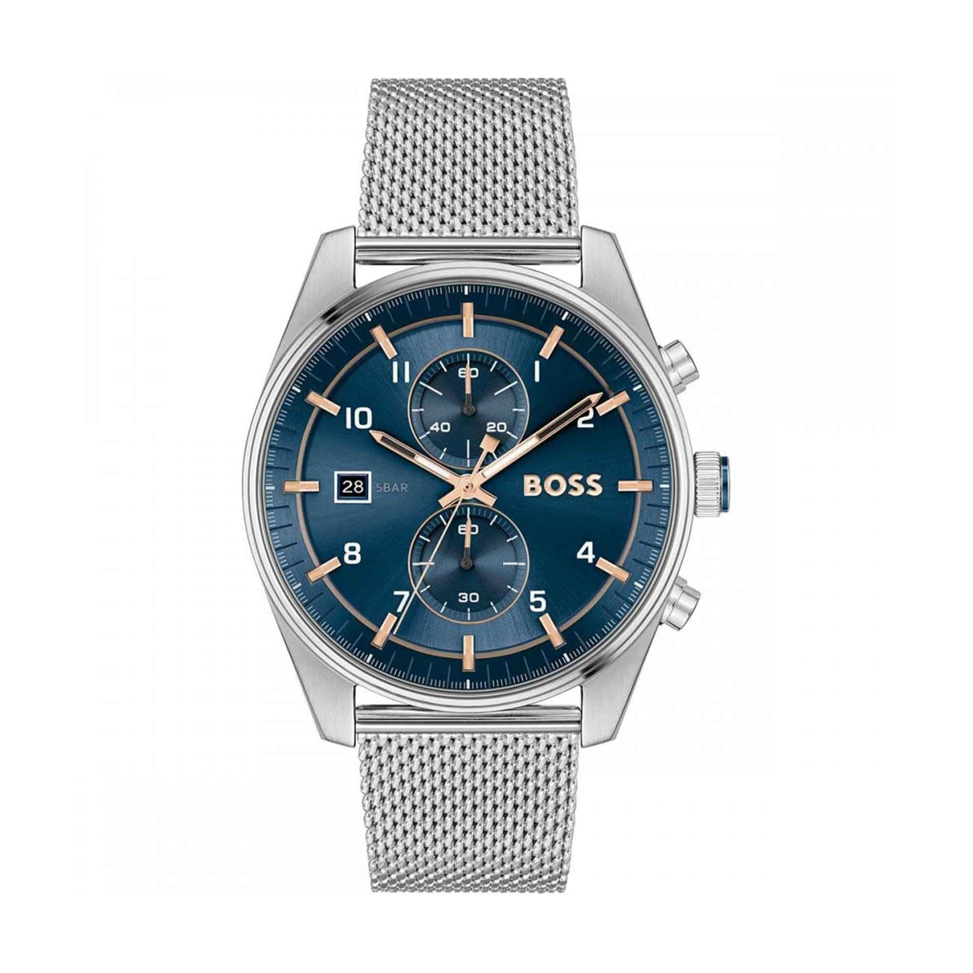 BOSS 44mm Skytraveller Stainless Steel Blue Mesh Quartz Watch