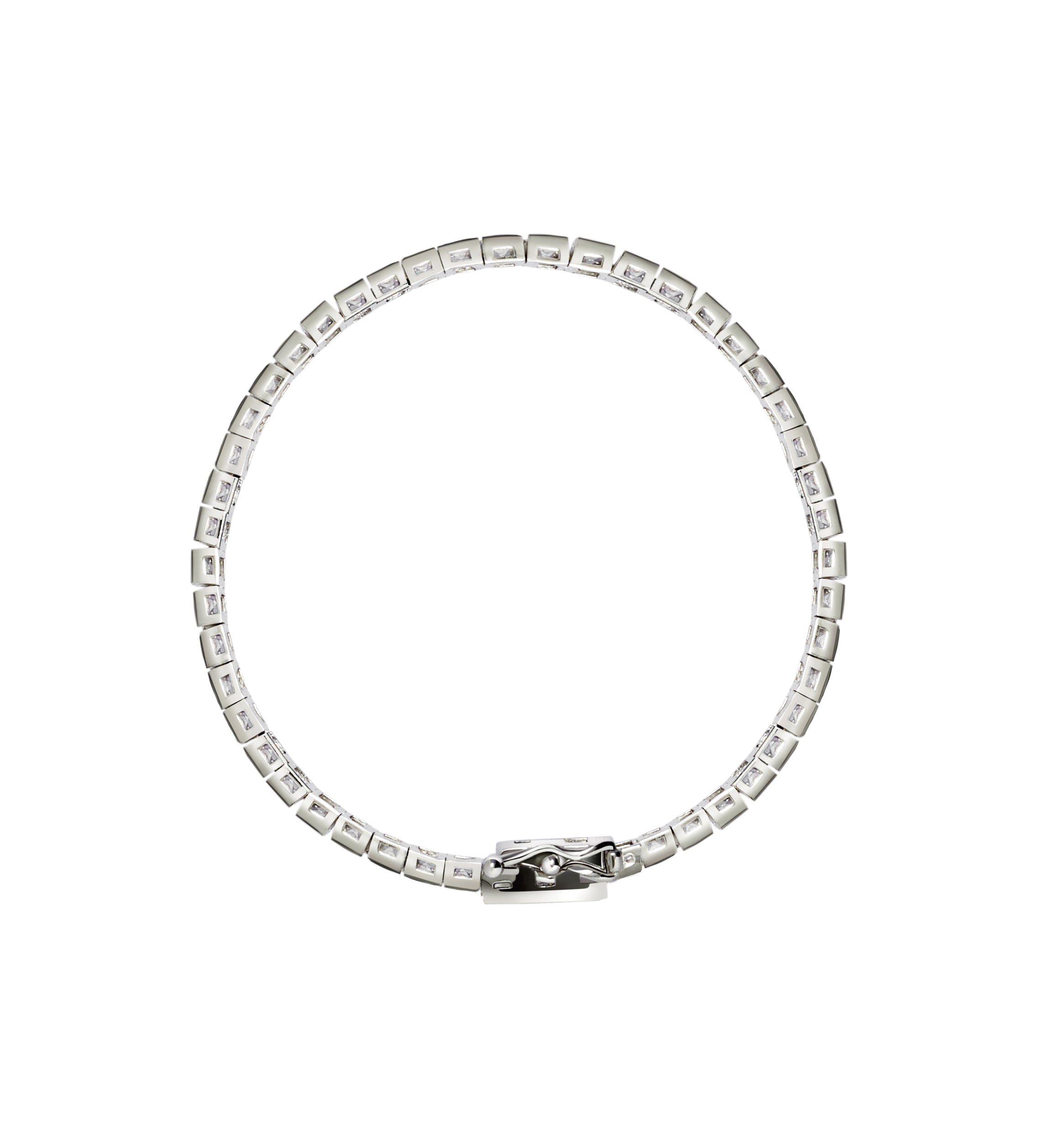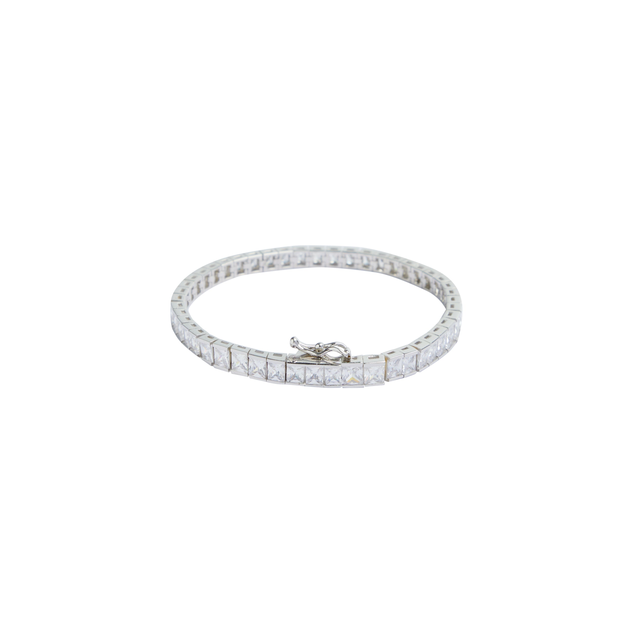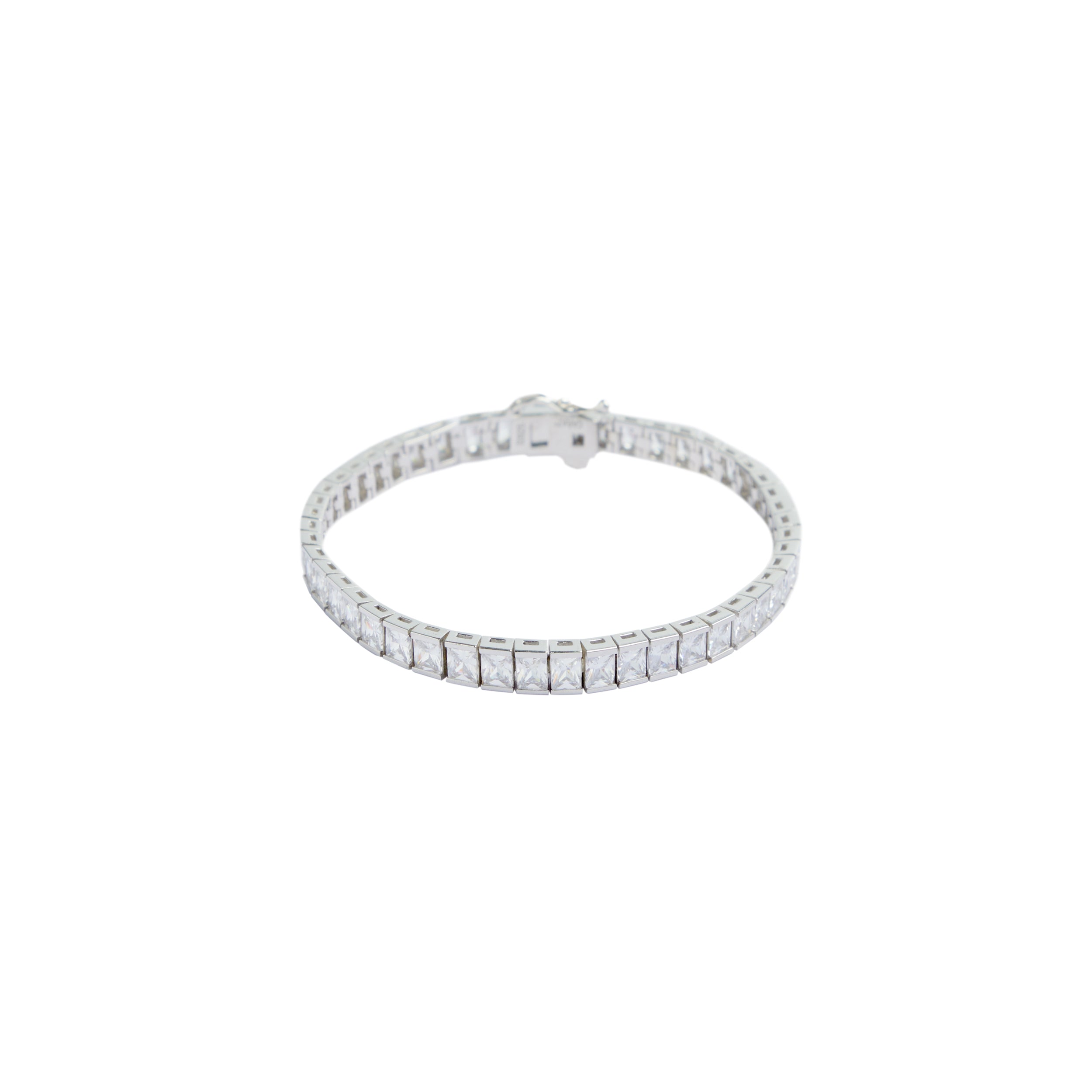 A classic tennis bracelet you will not want to take off. The Kayla bracelet features a row of princess cut stones in a channel setting. Complete with a double clasp for added security. Choose from small or medium stone sizes. Wear it as part of your everyday uniform.