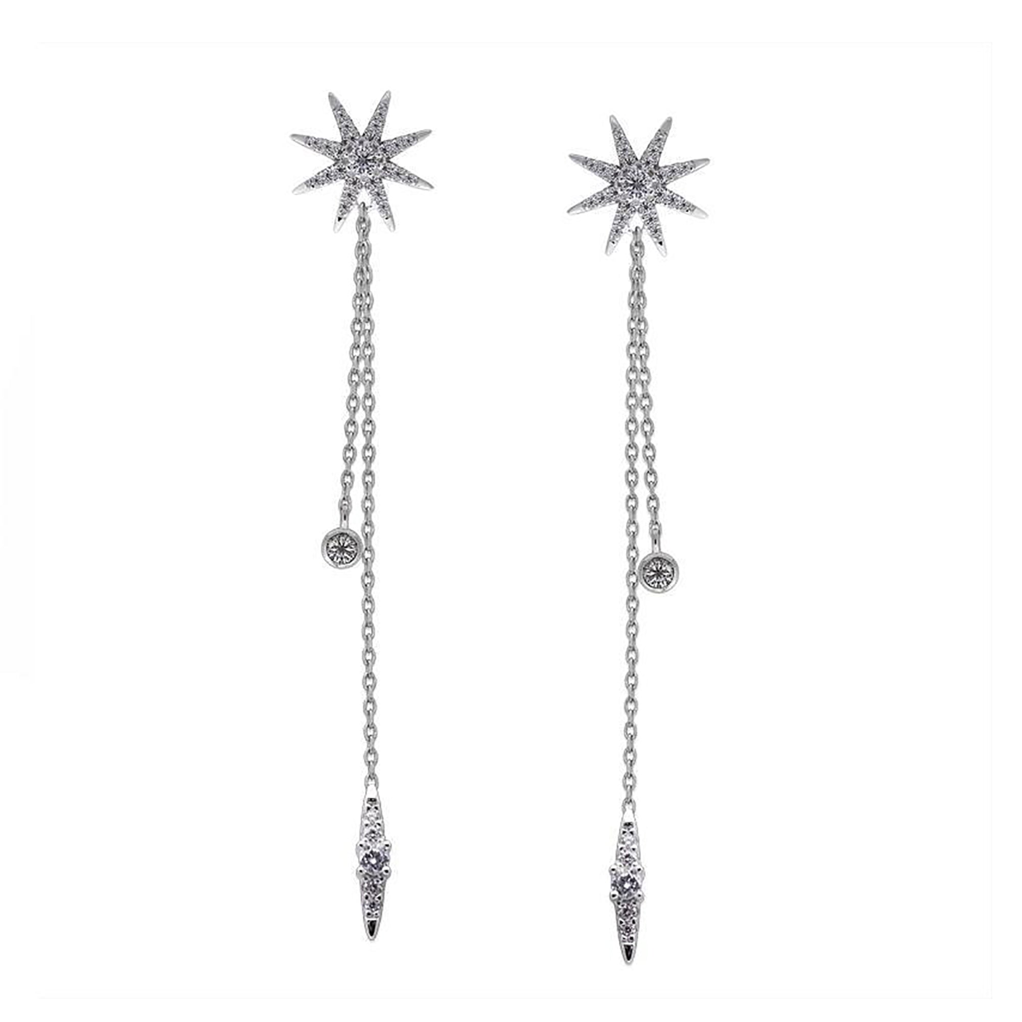 Carat*'s iconic Stella star motif highlights these captivating earrings with delicate chains finished with sparkling drops. Wear with your hair up to showcase its scintillating details.
