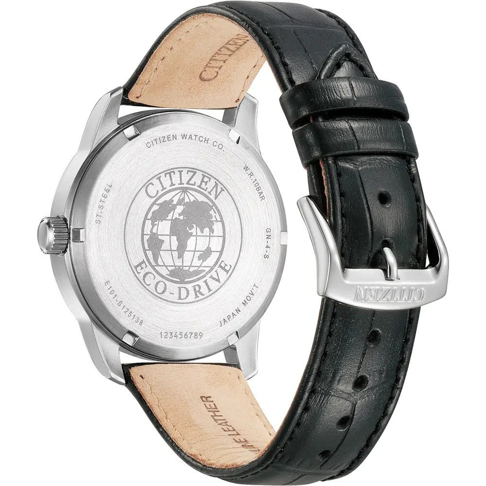 Citizen 42mm Stainless Steel Eco-Drive Black Leather Strap Watch