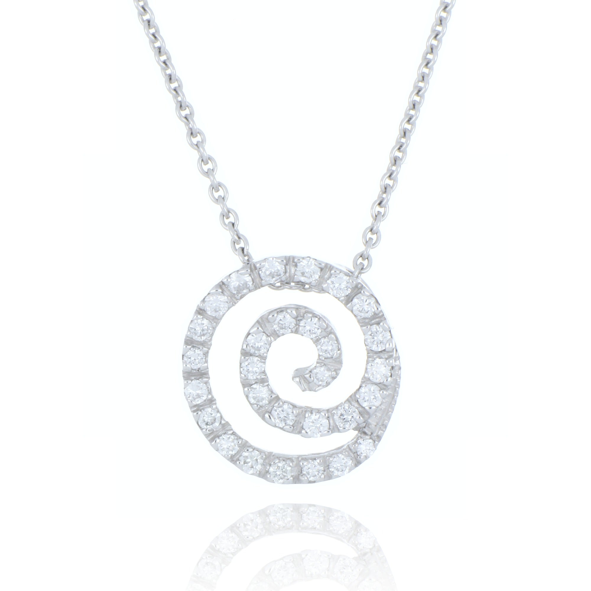 Add a touch of sparkle and swirl to your look with this stunning 18ct white gold necklace, featuring a dazzling 0.30ct diamond centrepiece. Its graceful swirling design catches the light with every move, making it perfect for turning heads at any occasion. Lightweight and elegantly crafted, this necklace blends timeless charm with a playful twist, adding a bit of magic to your everyday style or special nights out. A little sparkle goes a long way!