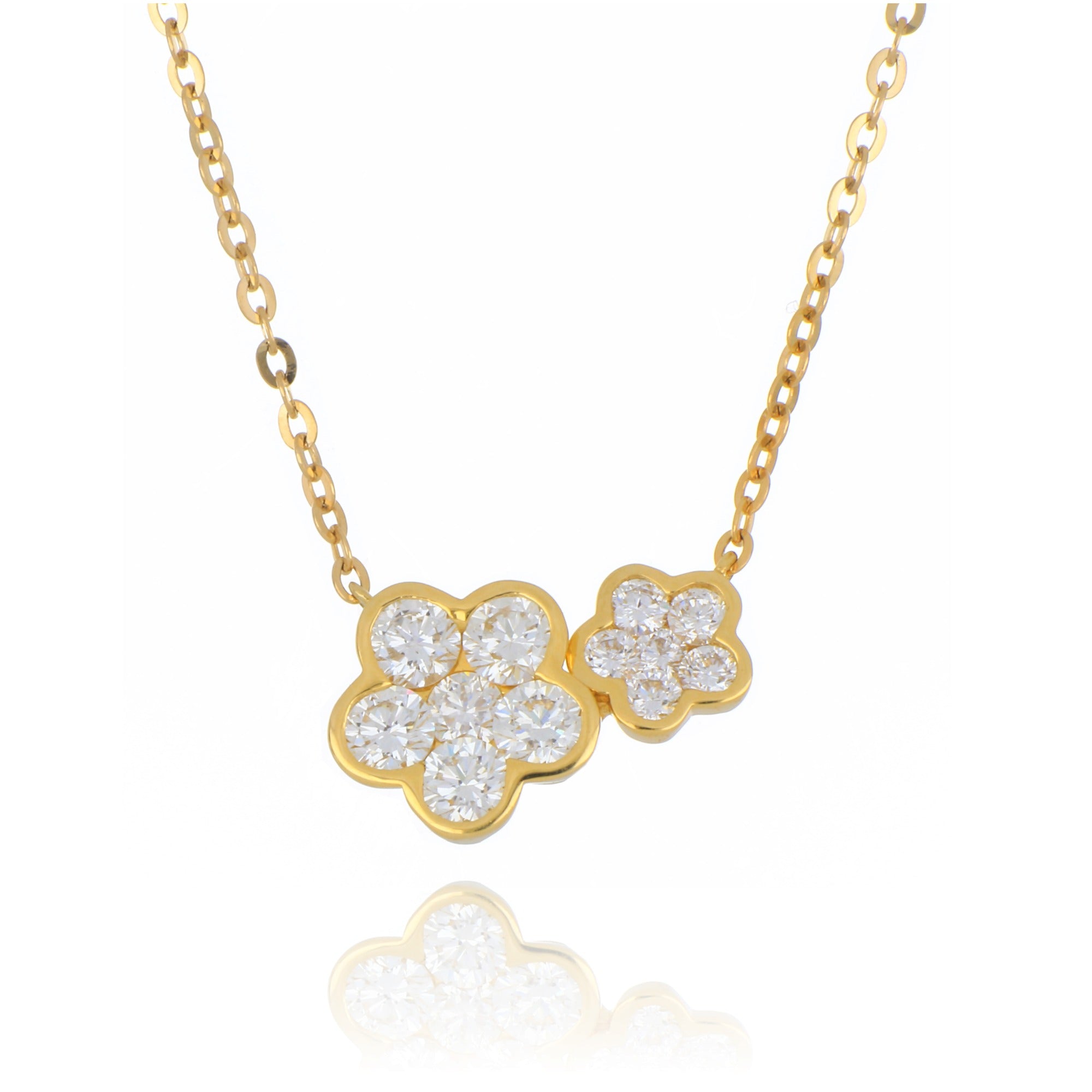 18ct Yellow Gold 0.65ct Diamond Double Flower Necklace