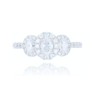 18ct White Gold 0.65ct Oval Cut Pink Sapphire And Diamond 3 Stone Ring