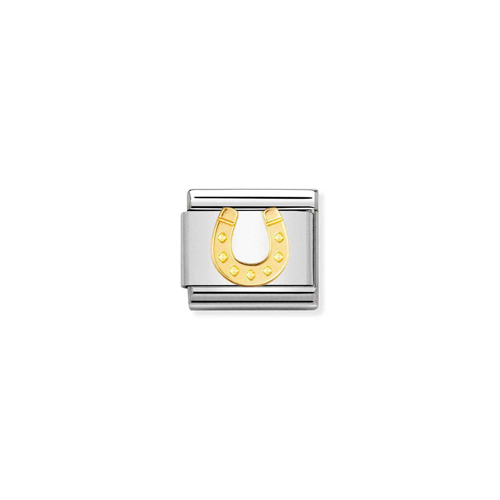 This charm would make a beautiful gift for horse lovers or as a gift of good luck. Part of Nomination's Composable Collection this charm has been made in stainless steel with a bonded 18ct yellow gold horseshoe. Complete your very own personalised bracelet with Nomination's Composable Collection.  Made in Italy.