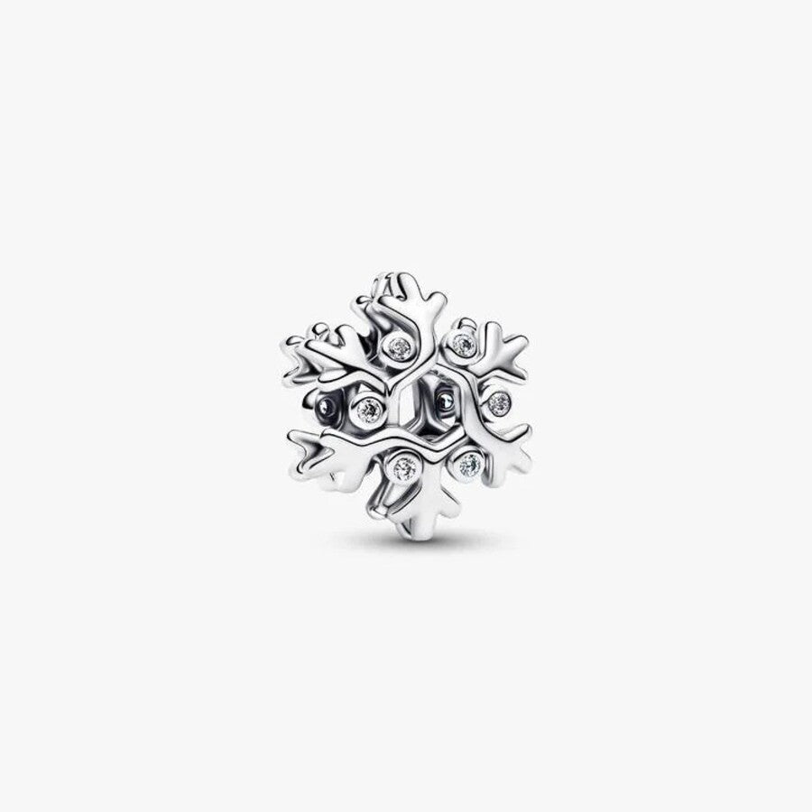 Embrace the crystalline elegance of winter with this sterling silver charm, featuring an intricately pierced snowflake design adorned with shimmering cubic zirconia accents. Its refined openwork construction captures the ethereal geometry of frost, offering versatile styling whether worn as a standalone statement or layered within a curated charm collection for enhanced luminosity.