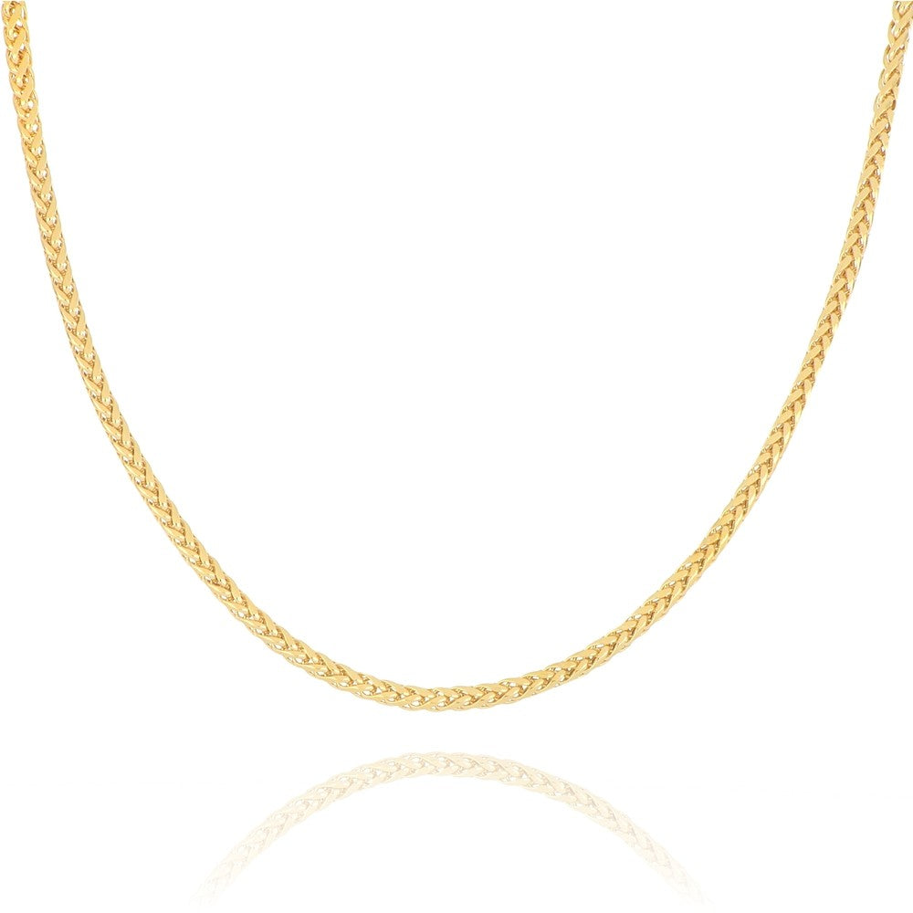 Elegant and timeless, this 9ct yellow gold Spiga necklace features a beautifully woven wheat-style design that reflects the light with a subtle, luxurious shimmer. Crafted for both strength and sophistication, the Spiga weave offers exceptional durability while maintaining a smooth, fluid feel against the skin.