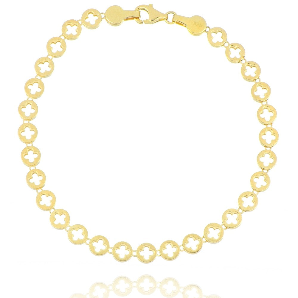 9ct Yellow Gold Round Clover Link Bracelet