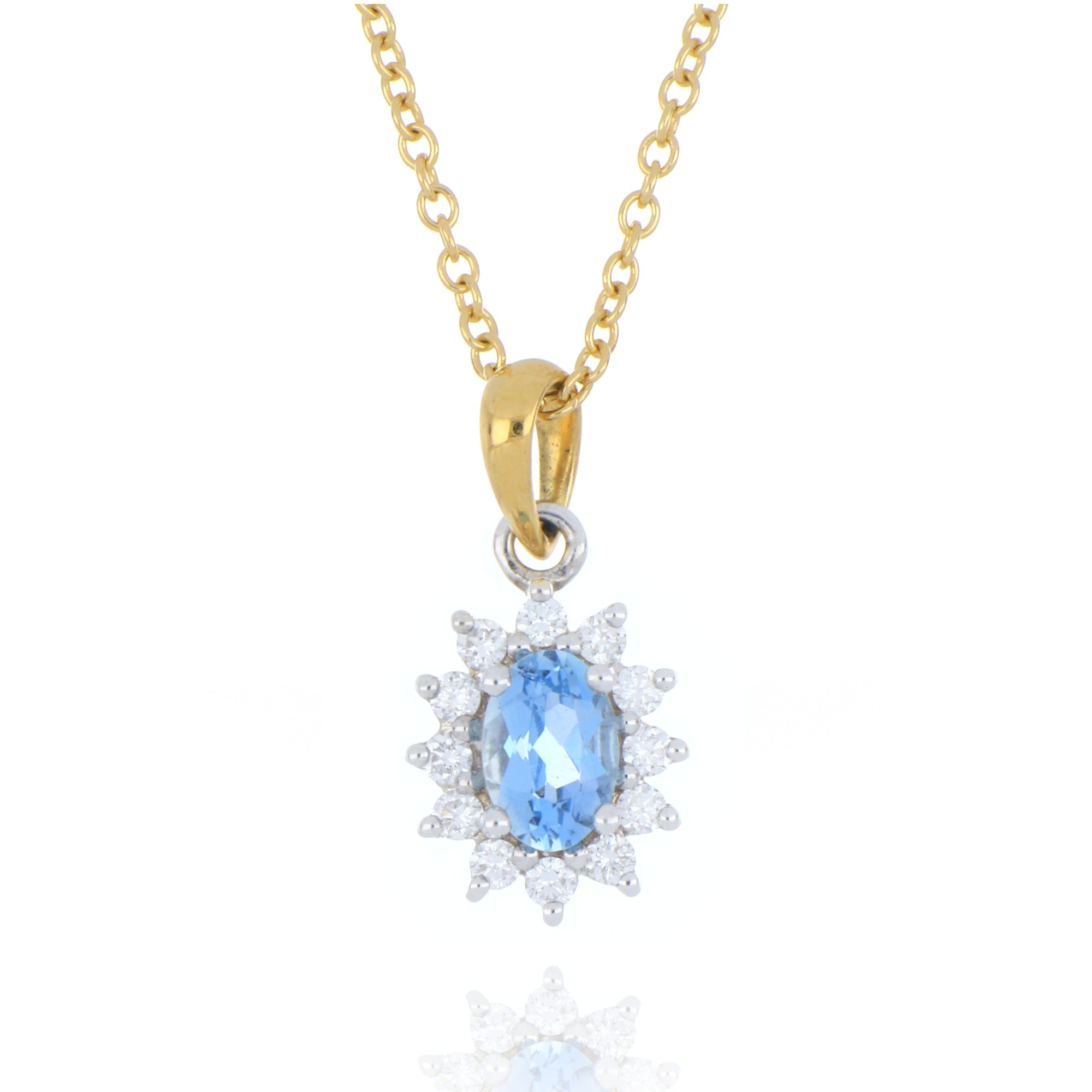 18ct Yellow Gold 0.43ct Aquamarine and Diamond Cluster Necklace