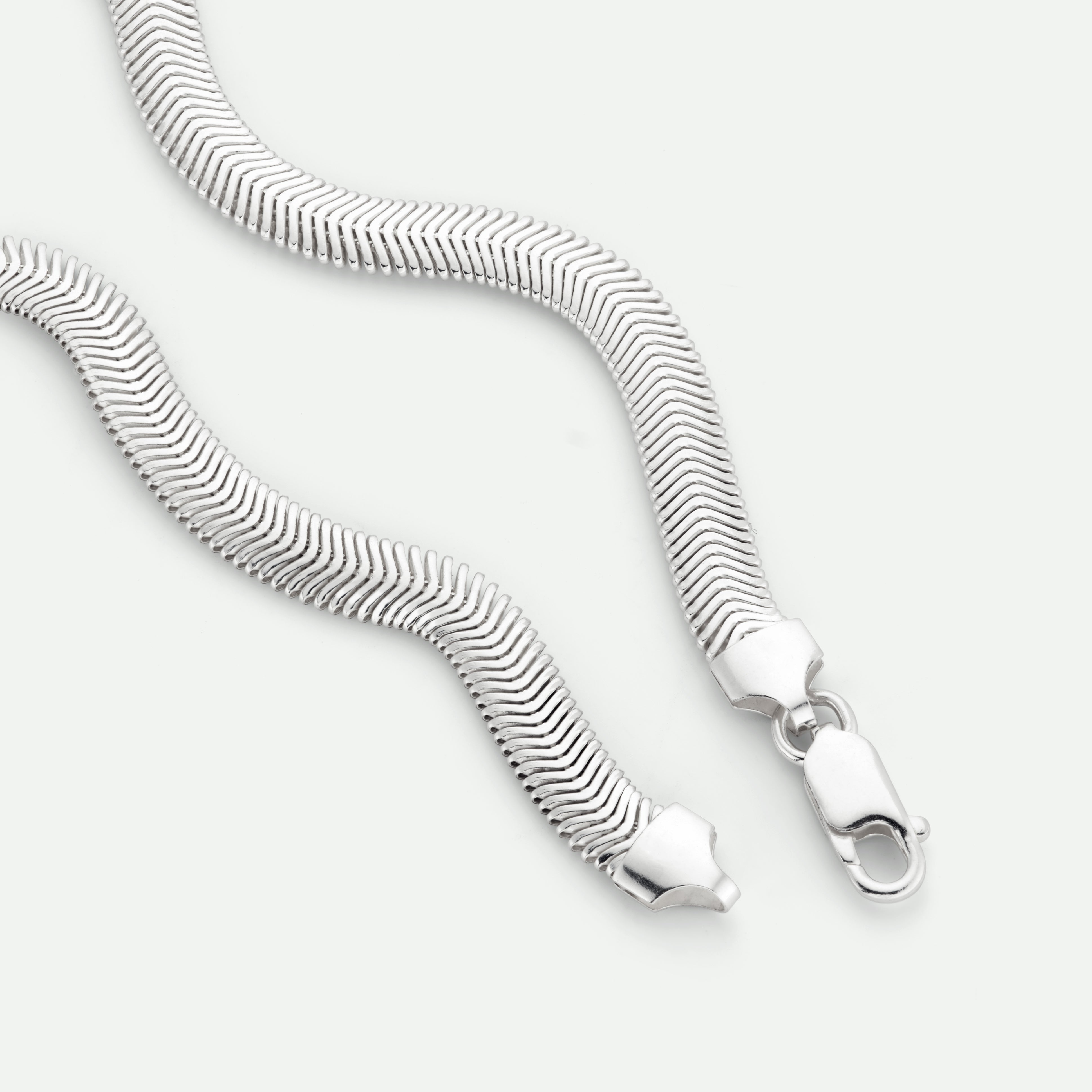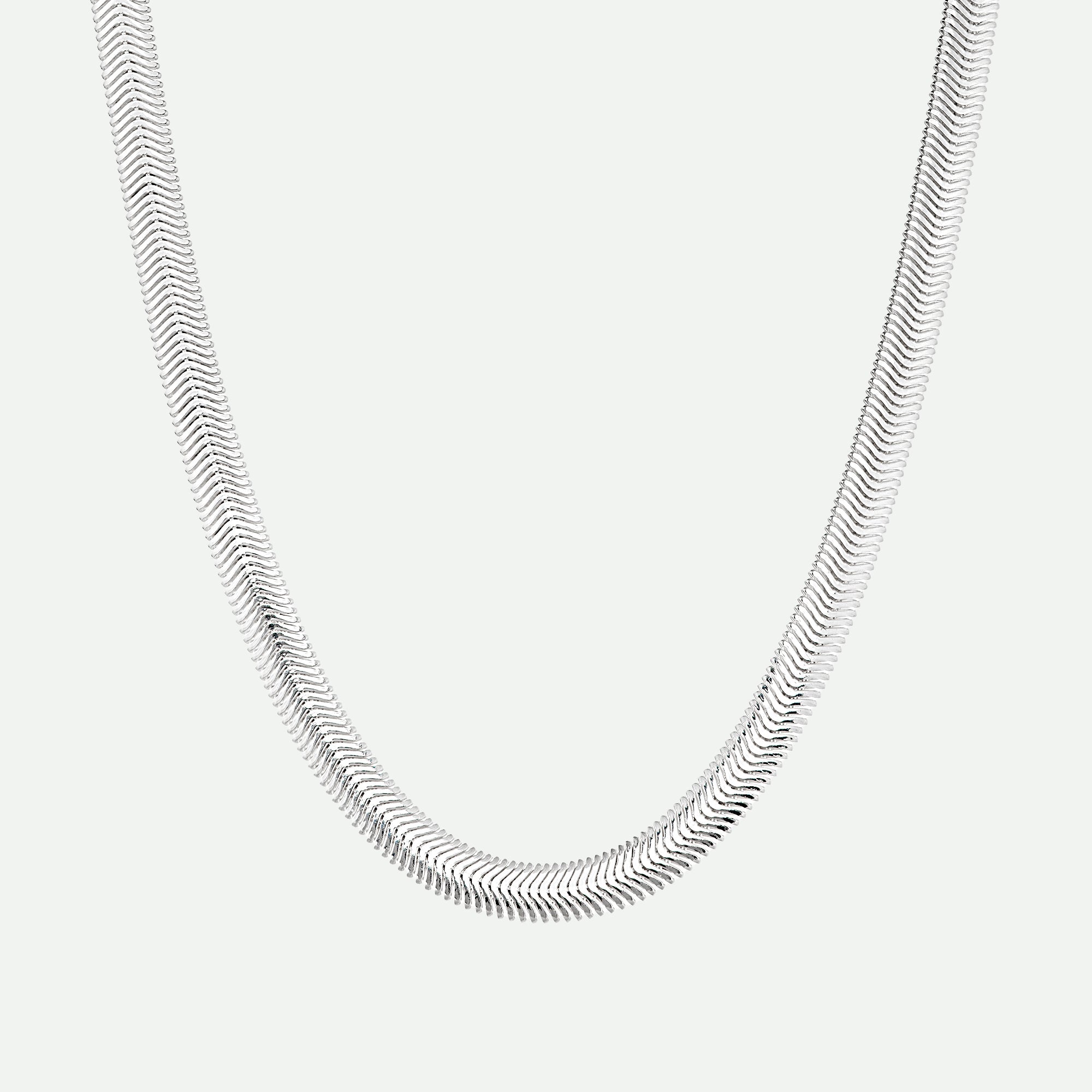 Make a statement with this sleek 17-inch snake chain offering a bold yet refined look. The smooth, fluid design drapes effortlessly against the skin, catching the light with a beautiful, fluid shine.