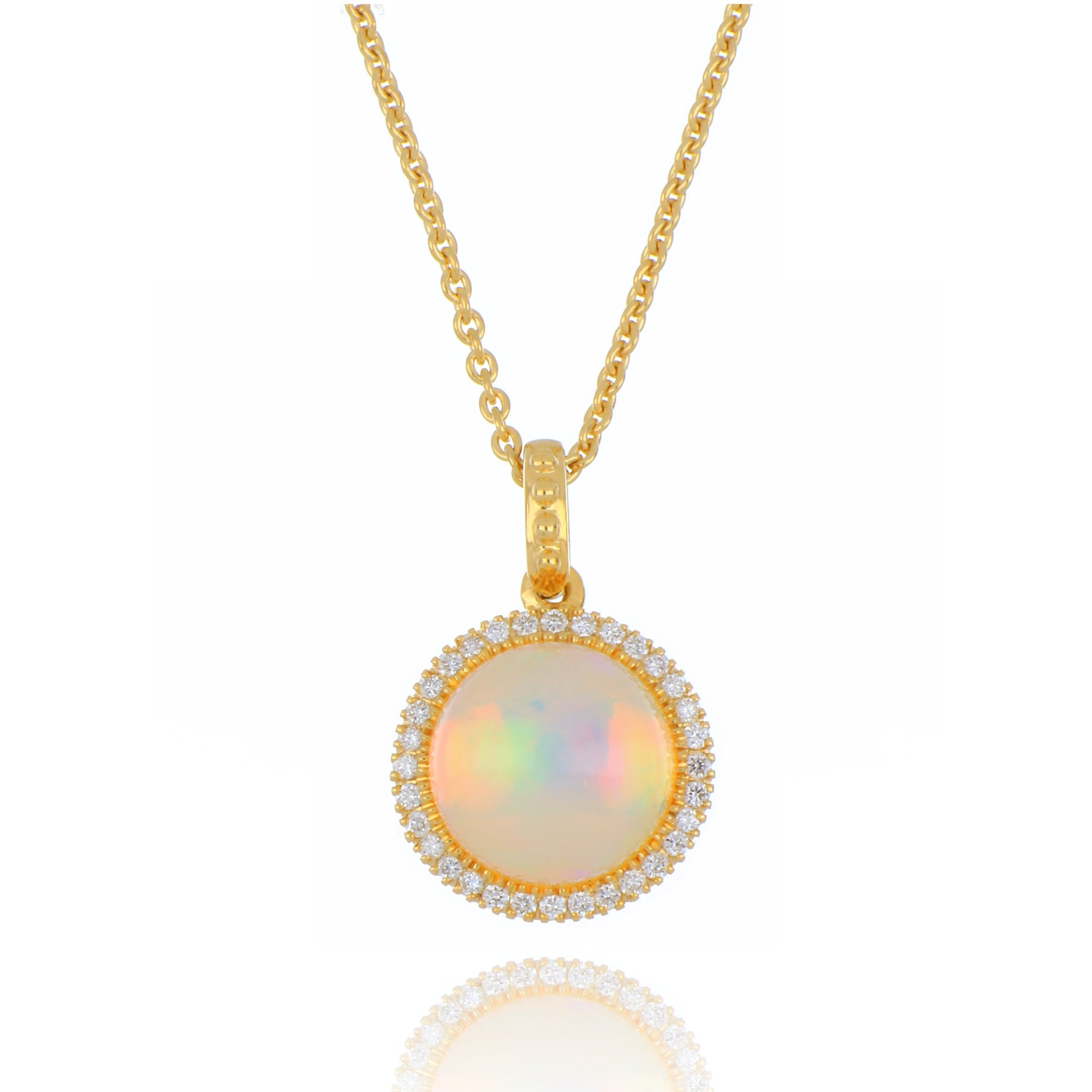 18ct Yellow Gold 1.82ct Cabochon Opal and Diamond Necklace