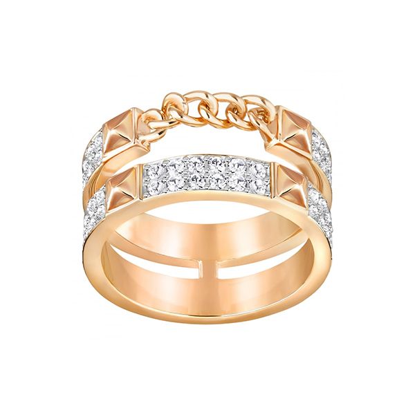 Stunning sparkle with a contemporary rock edge. This gorgeous Swarovski ring features a rigid chain and clear crystal pave which shimmers in the light. This ring adds just the right touch of glamour, day or night.