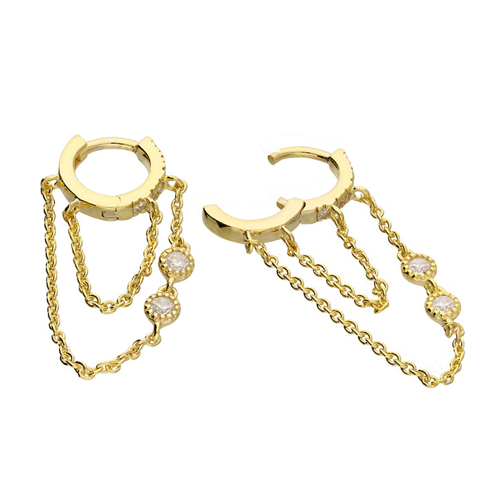 18ct yellow gold plated 10mm CZ huggy hoop chain link earrings