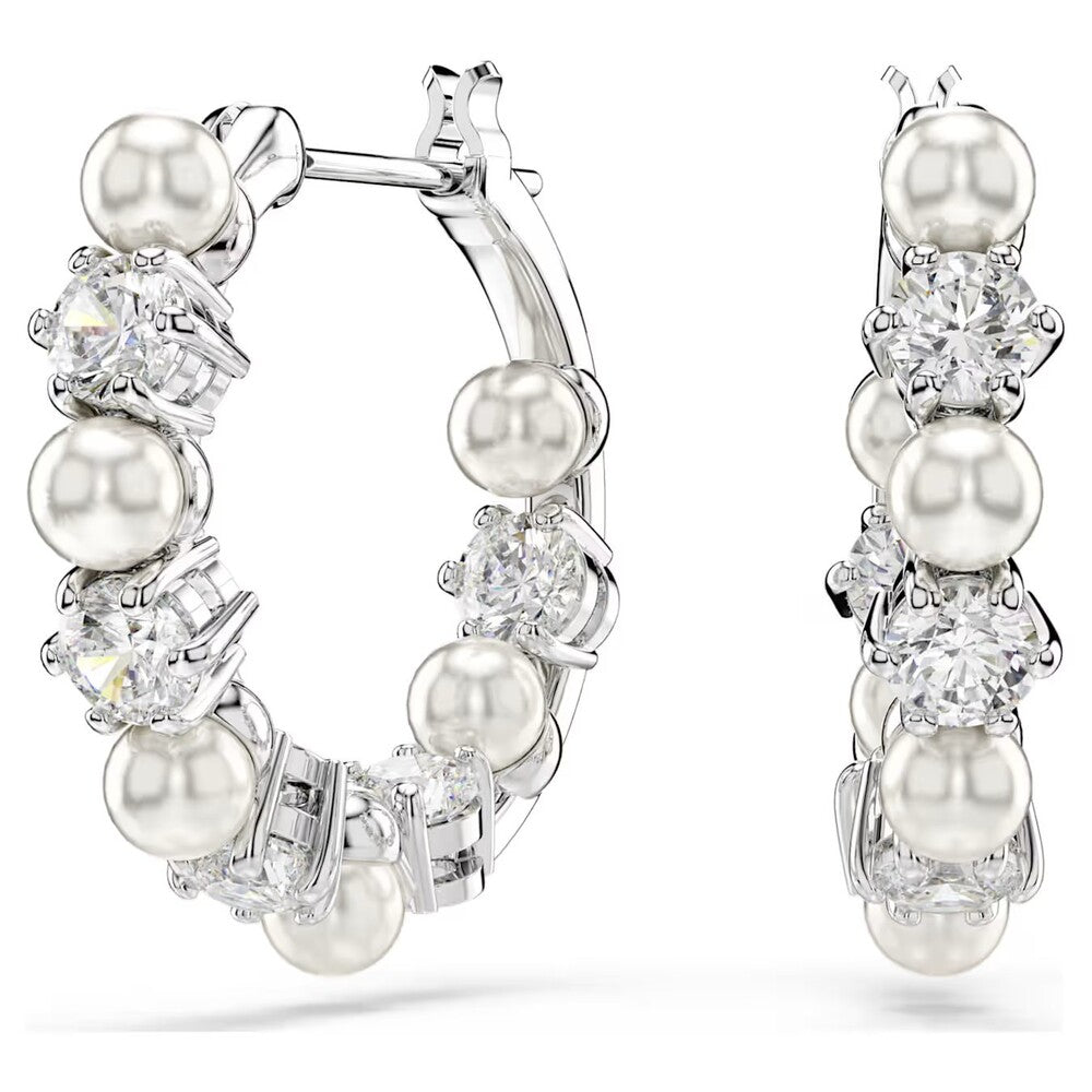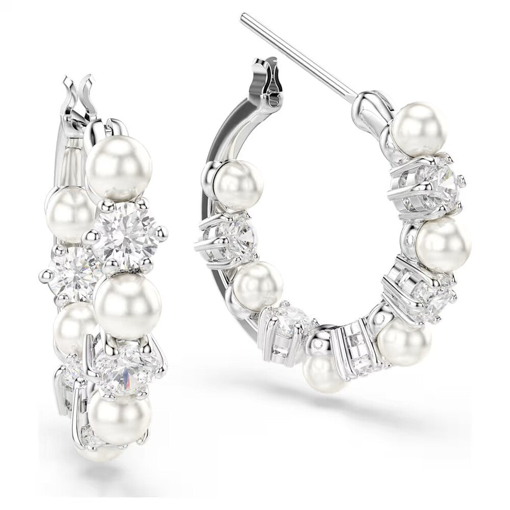 These pierced Matrix earrings offer a fresh, modern take on the classic hoop. Rhodium plated and decorated with a playful mix of Swarovski Zirconia and Crystal Pearls, they add a touch of chic sophistication that instantly elevates any outfit.