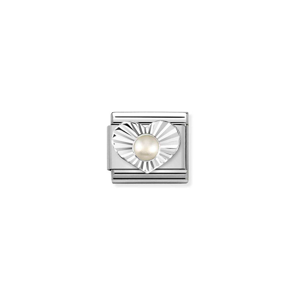 This heart pearl link would make a cute addition to your bracelet. The stainless steel link has been finished with sterling silver details and decorated with a single pearl. Complete your very own personalised bracelet with Nomination's Composable Collection. Made in Italy.