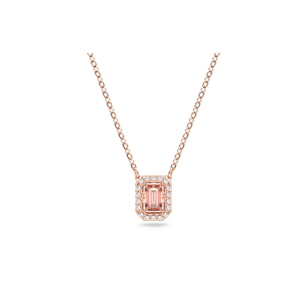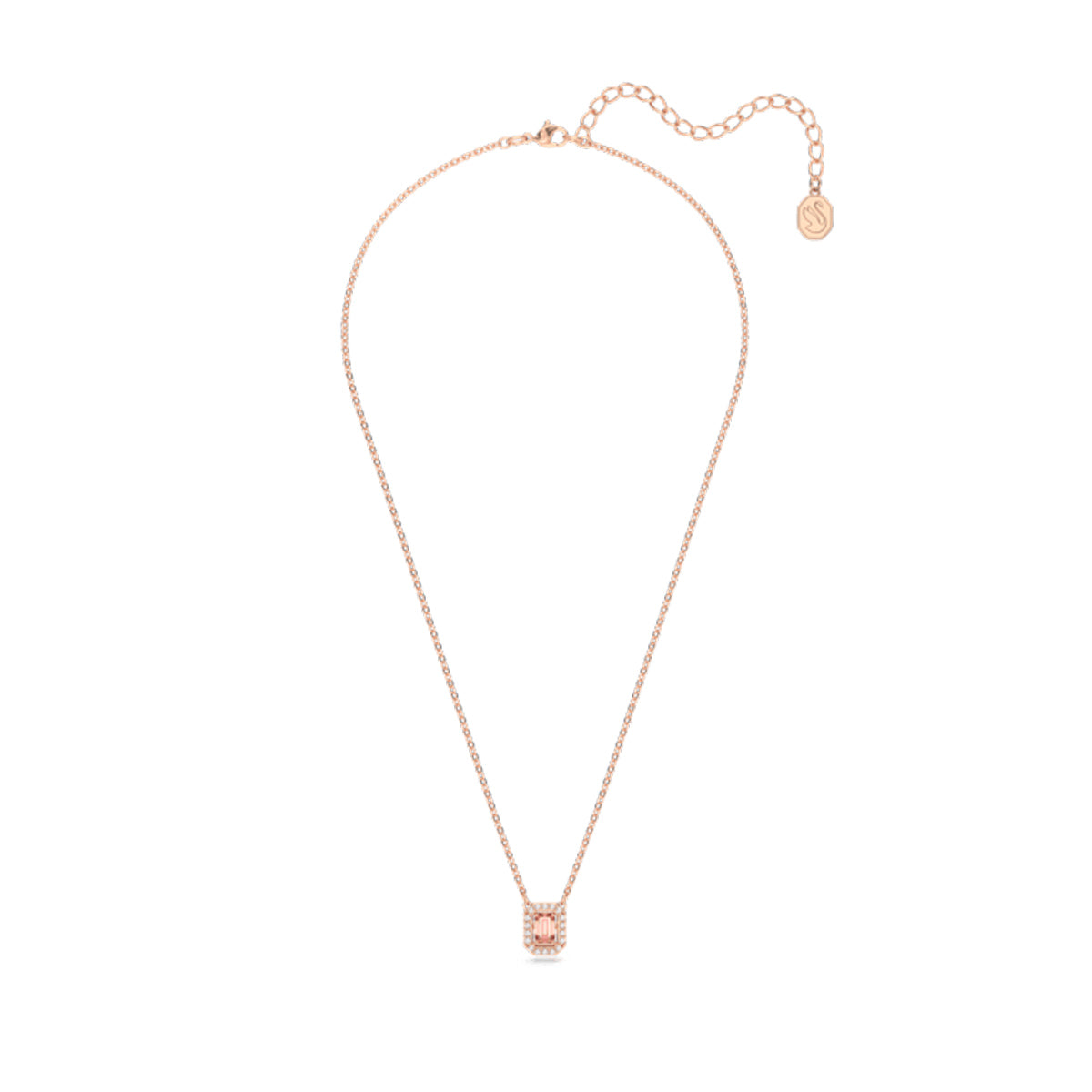 Dynamic engineering and timeless elegance collide in this beautiful pendant. A true centerpiece to any look, its pink, octagon-cut stone is framed by smaller crystals and suspended from a delicate, rose gold-tone plated chain. Wear yours to lend a feminine flourish to both casual and more formal ensembles. This pendant is part of the Millenia family.