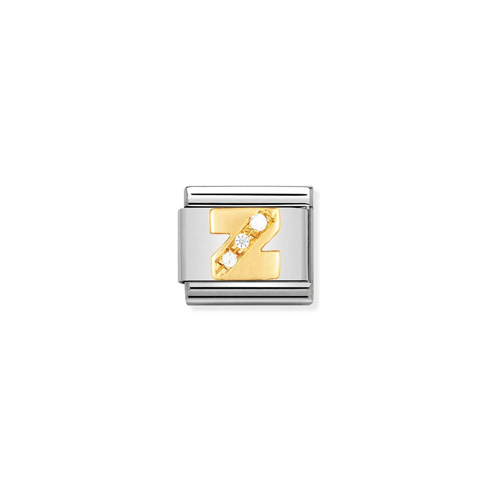 Part of Nomination's Composable Classic collection, this charm has been crafted in stainless steel with an 18ct yellow gold bonded Z and cubic zirconia details. Personalise your bracelet with the letter Z and represent one of your initials, the initial of someone you love or create a bracelet adorned with your own meaningful word or phrase. It would also make a beautiful gift for someone special with a touch of sparkle. Complete your very own personalised bracelet with Nomination's Composable Collection. Made in Italy.