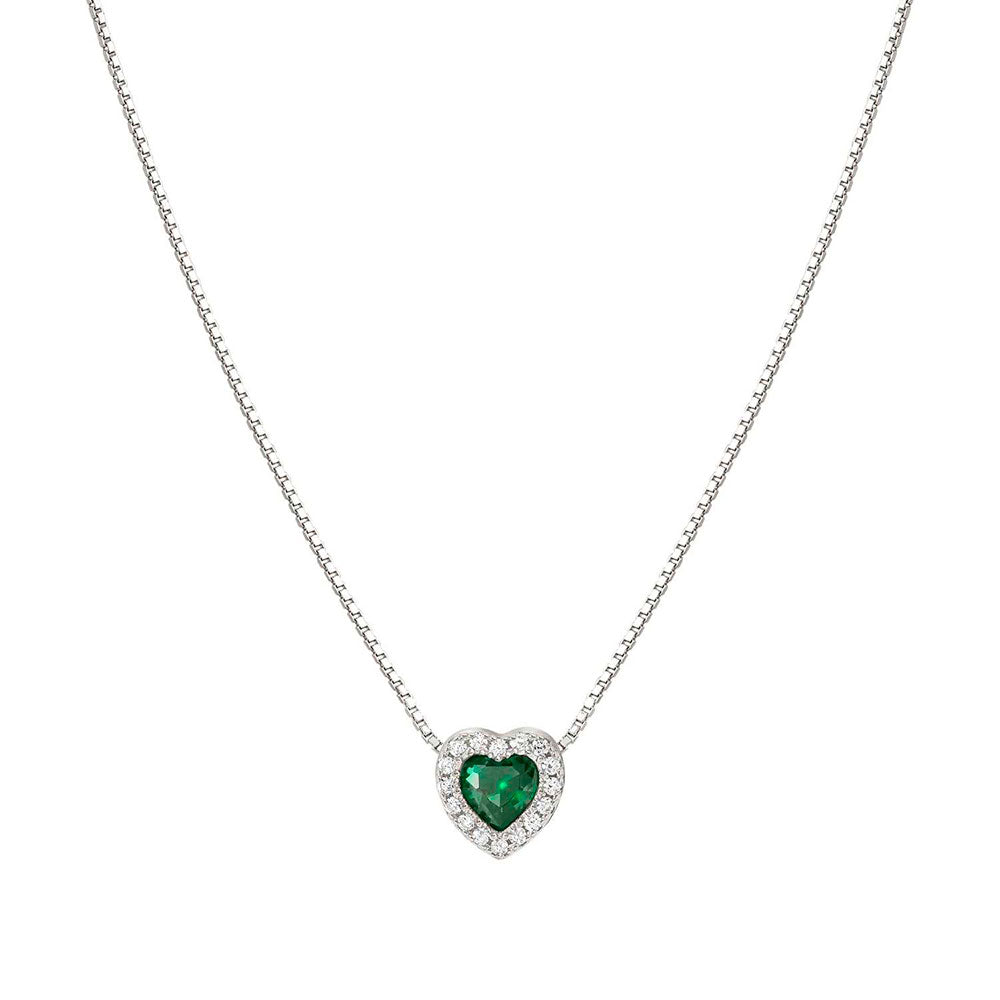 This cute pendant would make a romantic gift for the one you love. Crafted in sterling silver with a white rhodium treated finish and a green cubic zirconia heart surrounded by white cubic zirconia making a halo effect. This pendant has a length of 43cm and can be shortened to 38cm.