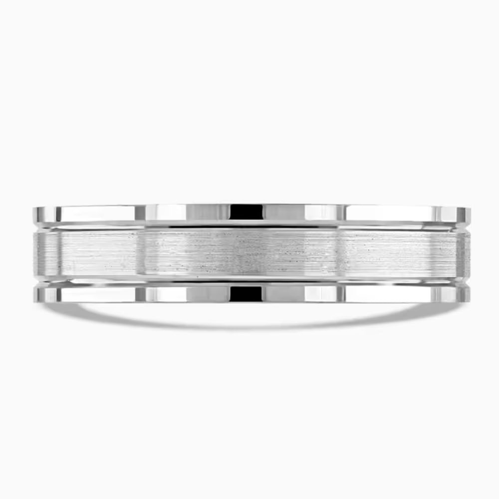 Our 9ct 5mm White Gold Contemporary Design Wedding Ring is a playful twist on a classic icon. Featuring a sleek flat top profile, it boasts a matte centre that adds subtle texture, enhanced by striking v-cut detailing for a dash of personality. Polished square edges frame the ring, creating a perfect balance between modern style and timeless elegance. Crafted in lustrous 9ct white gold, this 5mm wide band offers just the right statement for those who want their wedding ring to reflect effortless charm and contemporary flair every day.