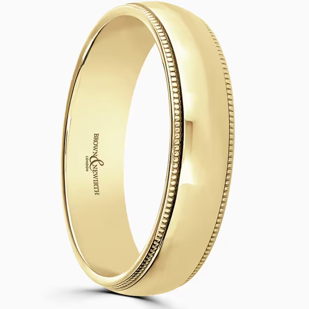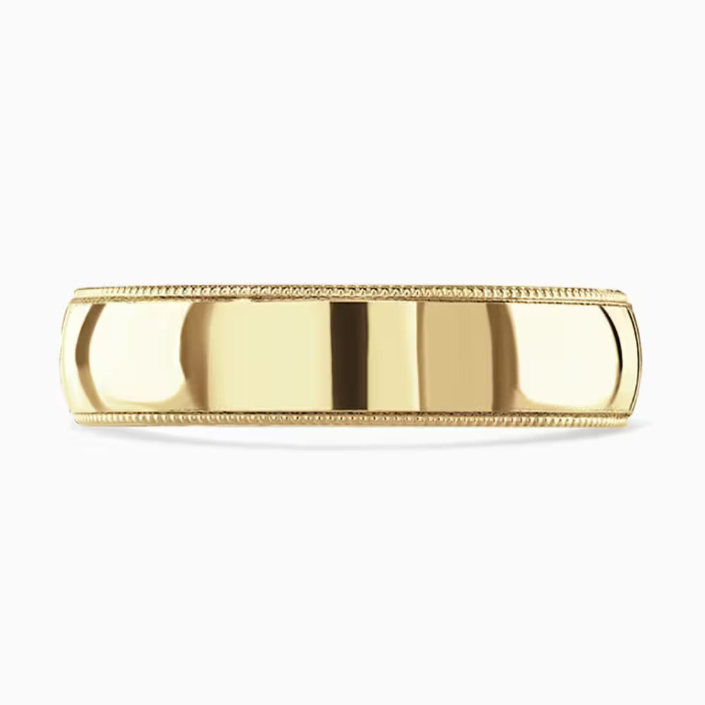 Celebrate love with our 9ct 5mm Yellow Gold Beaded Edge Wedding Ring, featuring a classic court profile accentuated by a charming traditional beaded edge. This timeless design offers a playful nod to vintage elegance while maintaining a sleek, modern feel. Crafted from warm and radiant 9ct yellow gold, the 5mm width ensures a comfortable fit that stands out without overpowering. Perfect for weddings, anniversaries, or simply treating yourself, this ring adds a joyful sparkle to every occasion. Available in a range of sizes to perfectly match your unique story—because every love deserves a ring as special as you are!