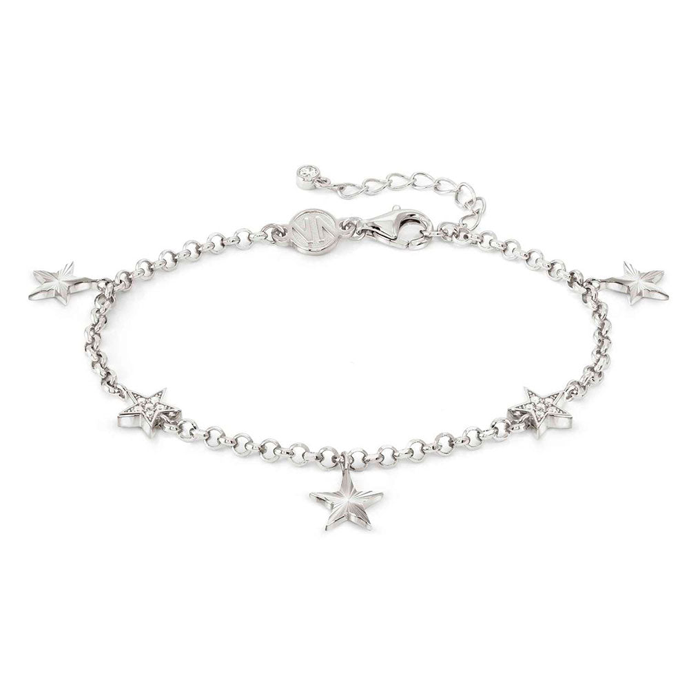A beautiful sterling silver bracelet with decorated etched and cubic zirconia star pendants. It would make a fantastic gift for someone special. This bracelet has a length of 19cm and can be shortened to 16cm. The cubic zirconia will make this bracelet sparkle on your wrist.