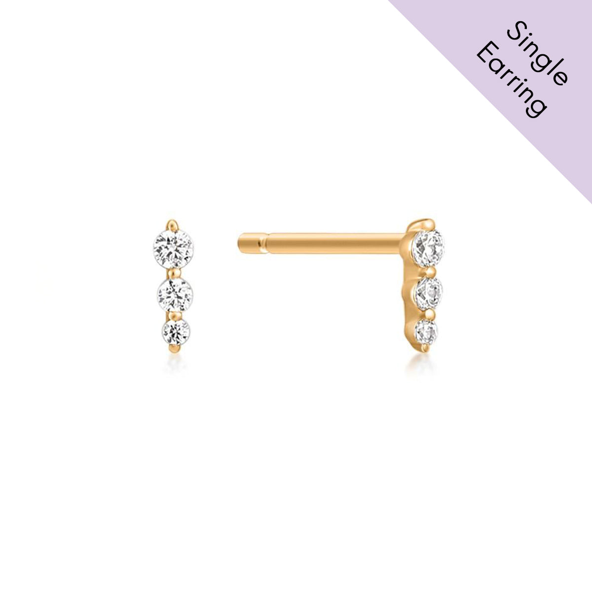 This 14ct yellow gold stud features a drop of three graduated round brilliant cut diamonds.