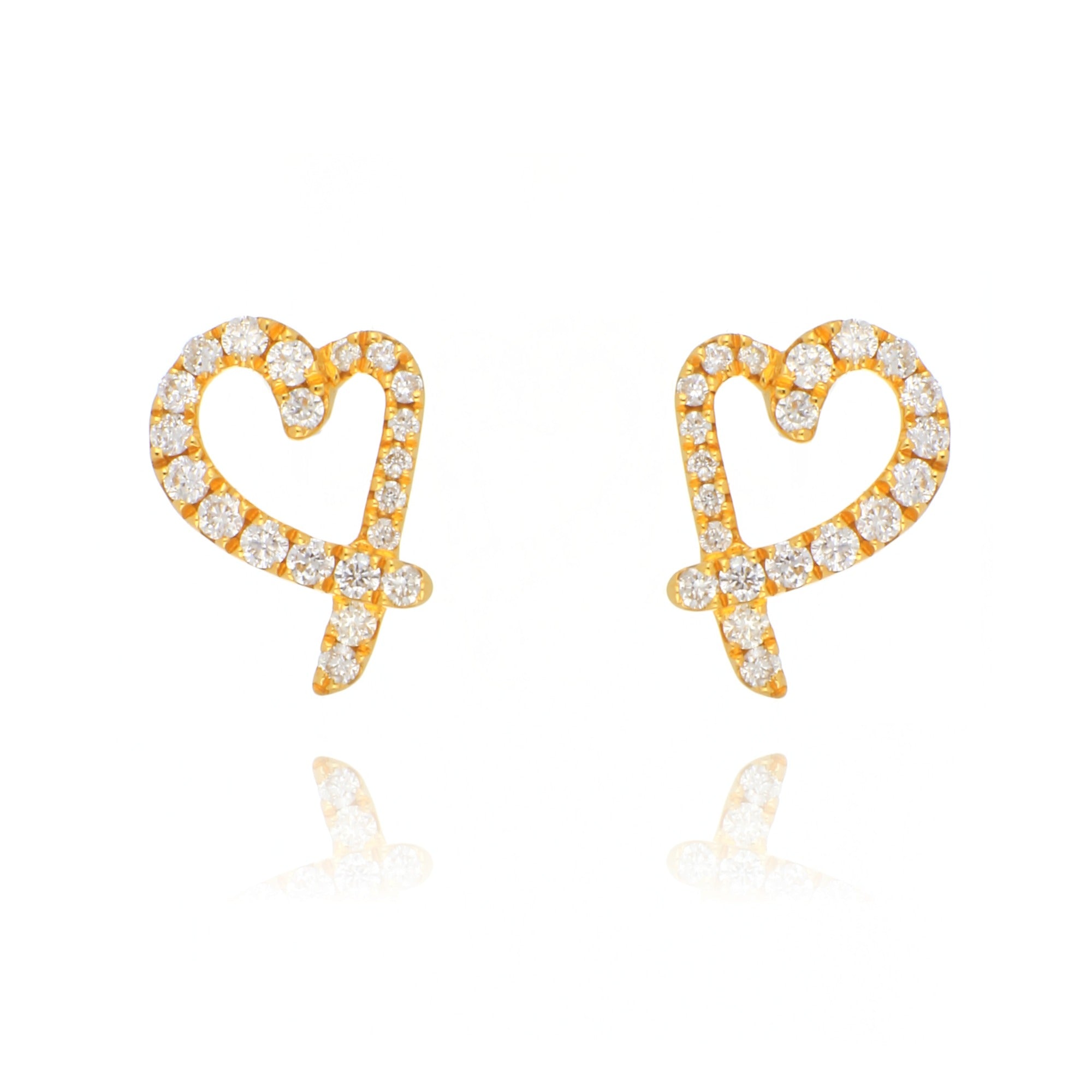 These elegant 18ct yellow gold stud earrings feature a charming heart design, each adorned with a total of 0.21ct of brilliant-cut diamonds. The warm glow of the yellow gold beautifully complements the sparkling diamonds, creating a timeless and romantic accessory. Expertly crafted with precision, these earrings offer a delicate yet durable setting that ensures lasting shine and comfort. Perfect for daily wear or special occasions, their classic heart motif adds a subtle touch of sophistication and sentimentality to any jewellery collection. This pair is an ideal gift for expressing love or celebrating meaningful moments.