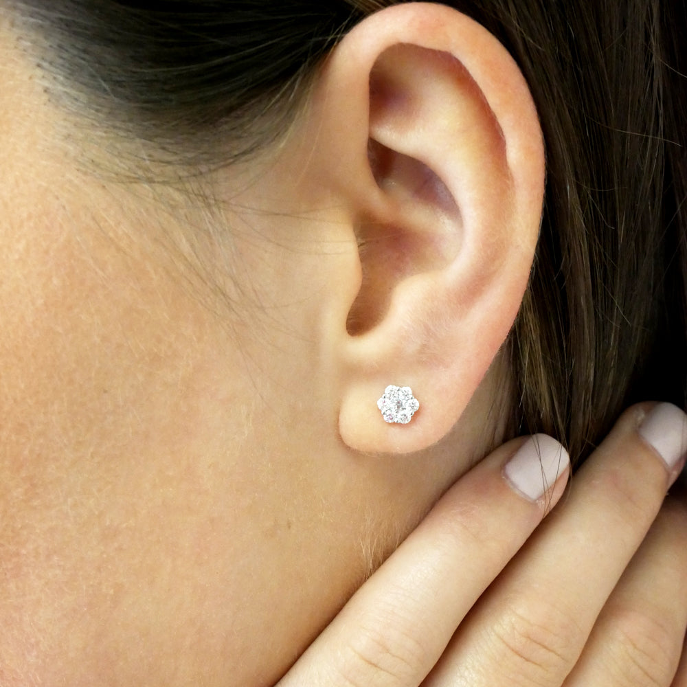 9ct White Gold 0.50ct Diamond Flower Cluster Stud Earrings