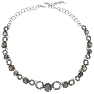 Giovanni Raspini’s Silver Maui Stud Earrings are hand crafted from sterling silver and feature iridescent mother of pearls and quartz. These studs are the perfect pair to take you from a day to night look.