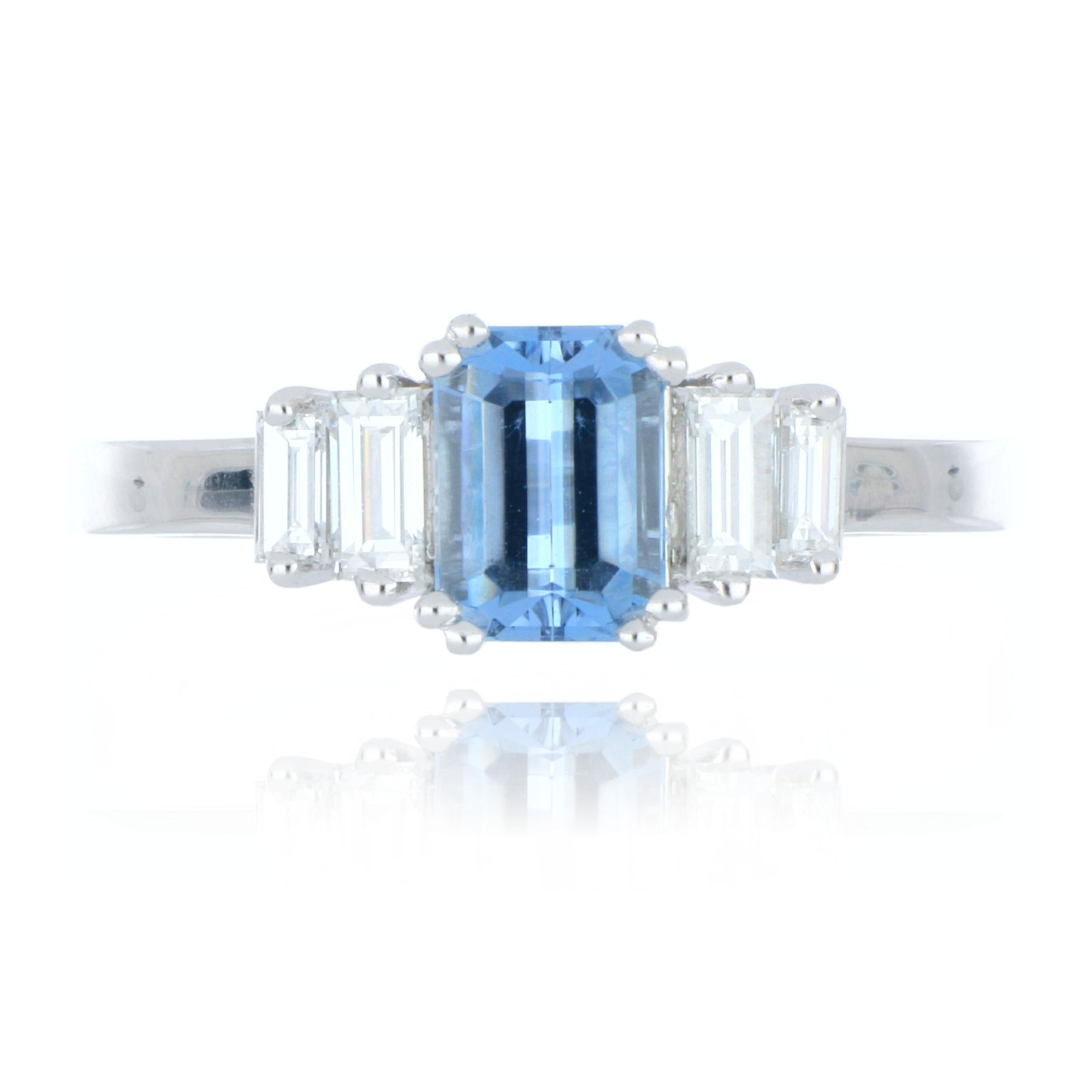 Platinum 0.96ct Aquamarine and Diamond Art Deco 5 Stone Ring