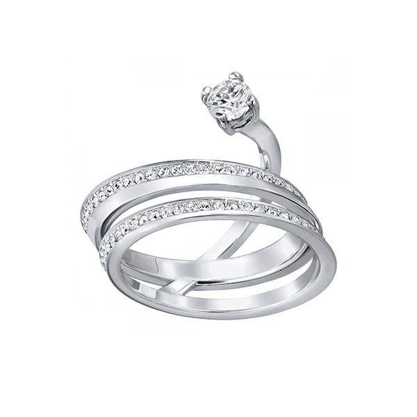 This gorgeous Swarovski ring features swirling clear crystal pave and a clear crystal chaton that emerges from the ring. The feminine design evokes the fashionable stacked look.