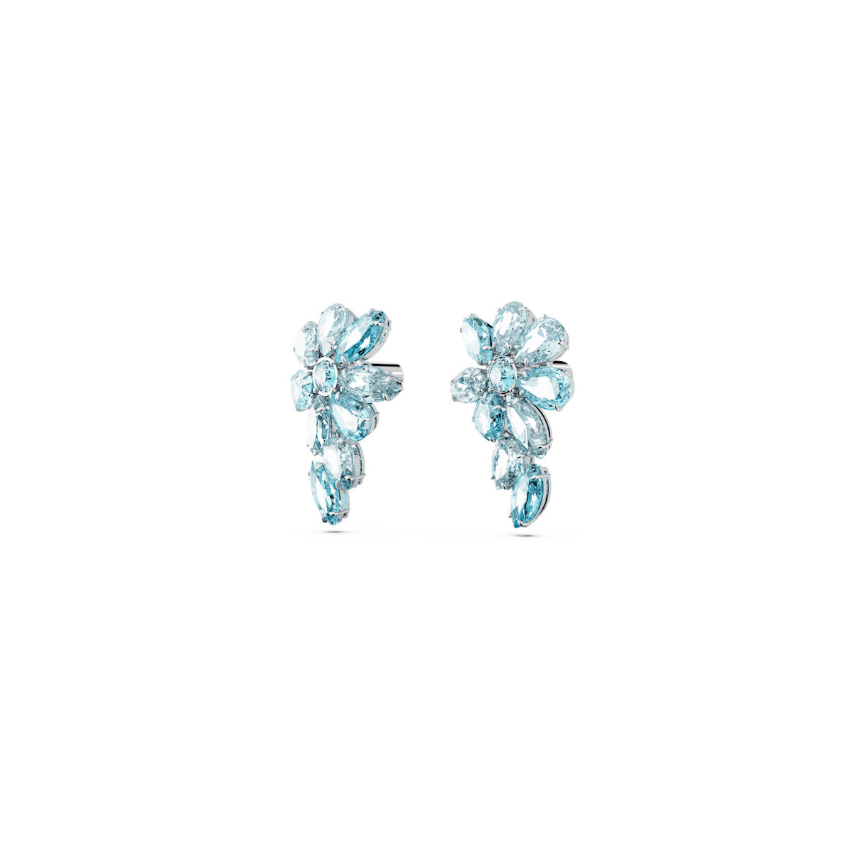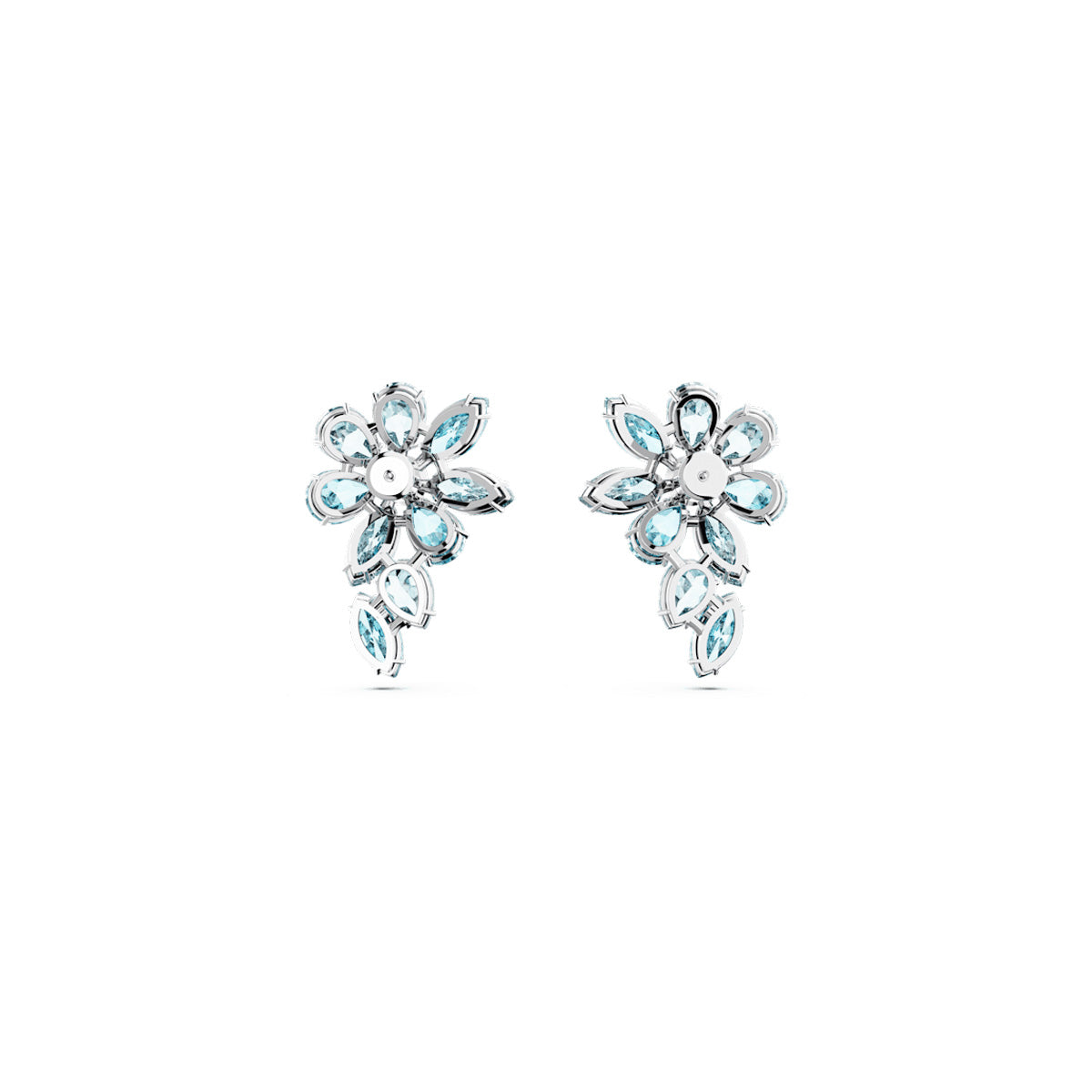 Inject the beauty of nature into any style with these Gema pierced earrings that bloom with savoir-faire. A mix of blue crystals are organically, yet precisely, arranged on a refined rhodium plated setting, allowing each hue to shine bright. Combine with a blue necklace from the Gema family or wear alone for effortless glamour after dark.