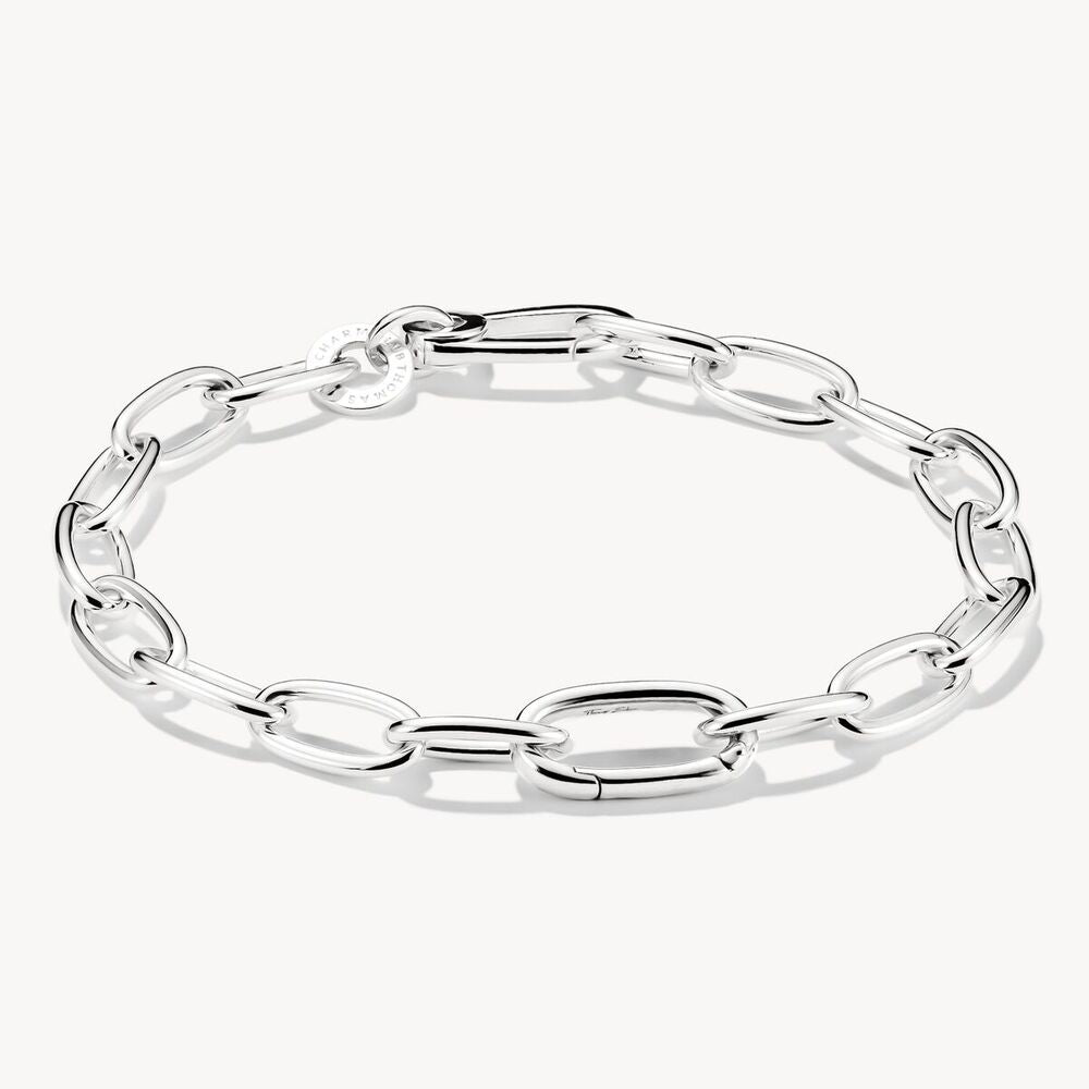 Mix and match your favourite charms effortlessly with this charm bracelet’s standout larger oval link that opens for easy charm attachment. You can also clip charms with lobster clasps onto the smaller chain links, giving you the freedom to switch up your style anytime. Crafted from recycled 925 silver with a sleek, modern design, this playful bracelet lets you create unique looks that keep your special memories close.
