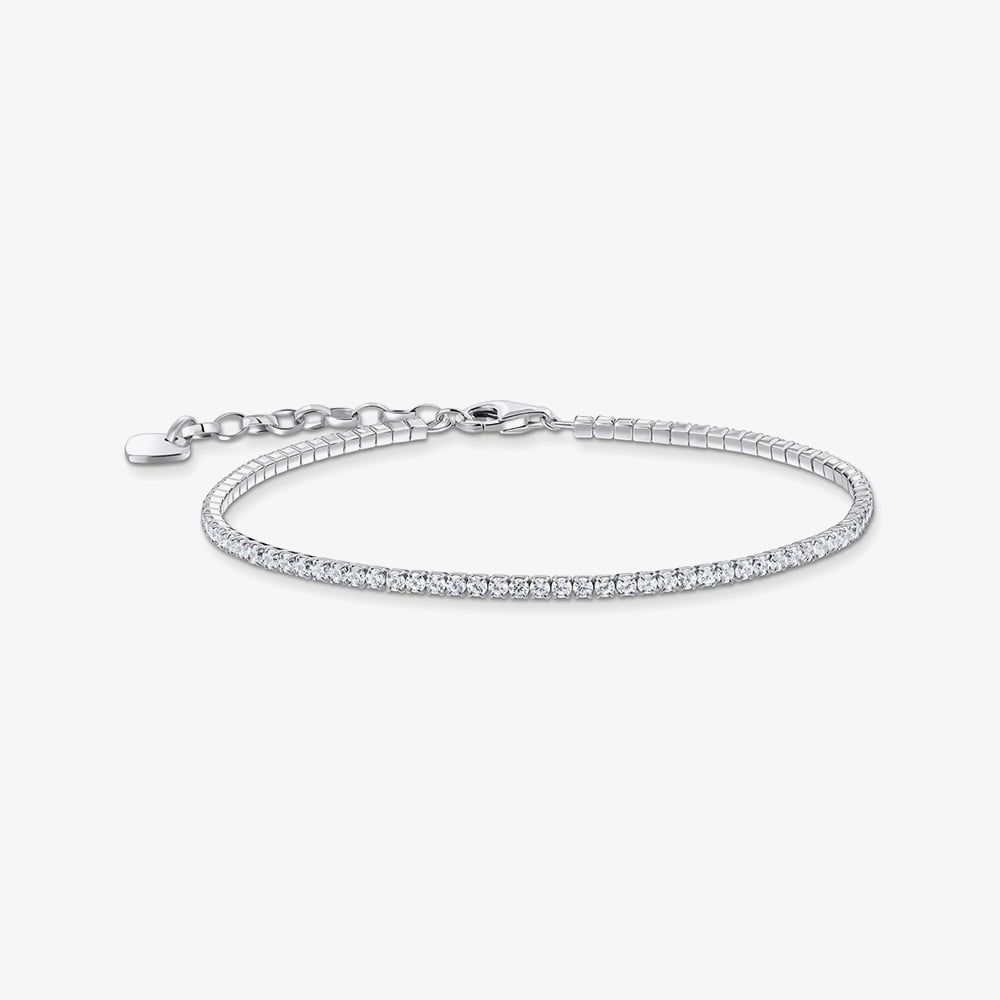 This stone-embellished bracelet first gained worldwide fame during the 1987 US Open and has since become a classic piece of jewellery that radiates timeless elegance. Crafted from recycled silver, this tennis bracelet adds a touch of sophistication to any outfit, whether for business, casual, or special occasions. The bracelet is adorned with small, white zirconia stones, expertly cut in a precise cabochon style, that gracefully encircle your wrist.