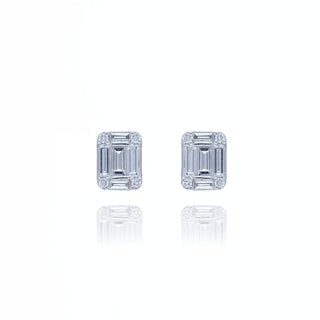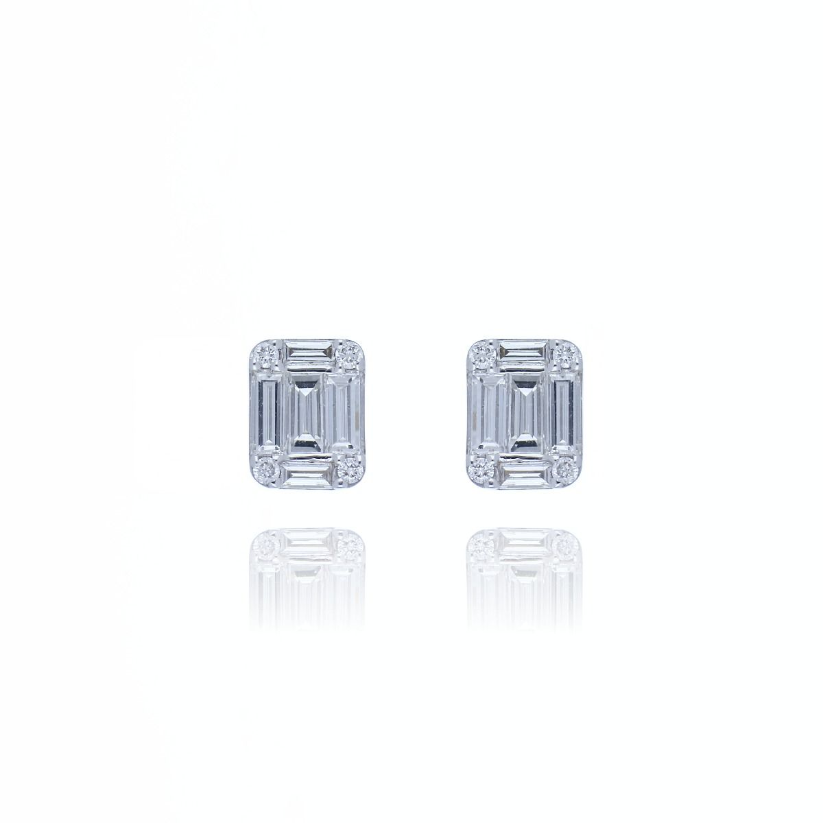 18ct White Gold Baguette Cut Diamond Stud Earrings