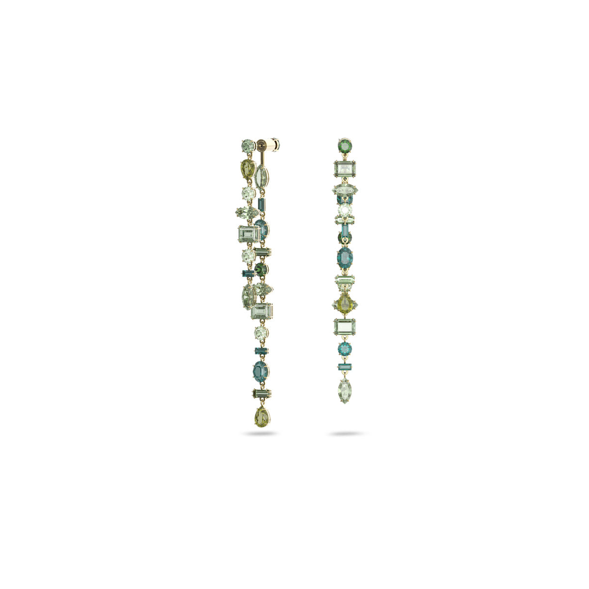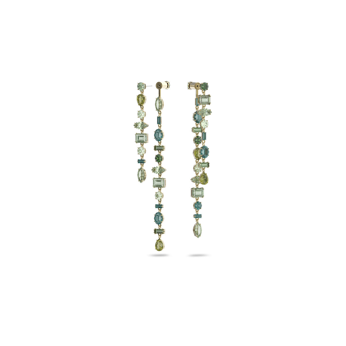 In vibrant shades of verdant green, these drop earrings feature a mix of classic cut crystals for an elegant yet playful twist on the essence of Swarovski crystals. Finished with a gold-tone plated setting, wear yours with the matching necklace from the Gema family for a prismatic statement.