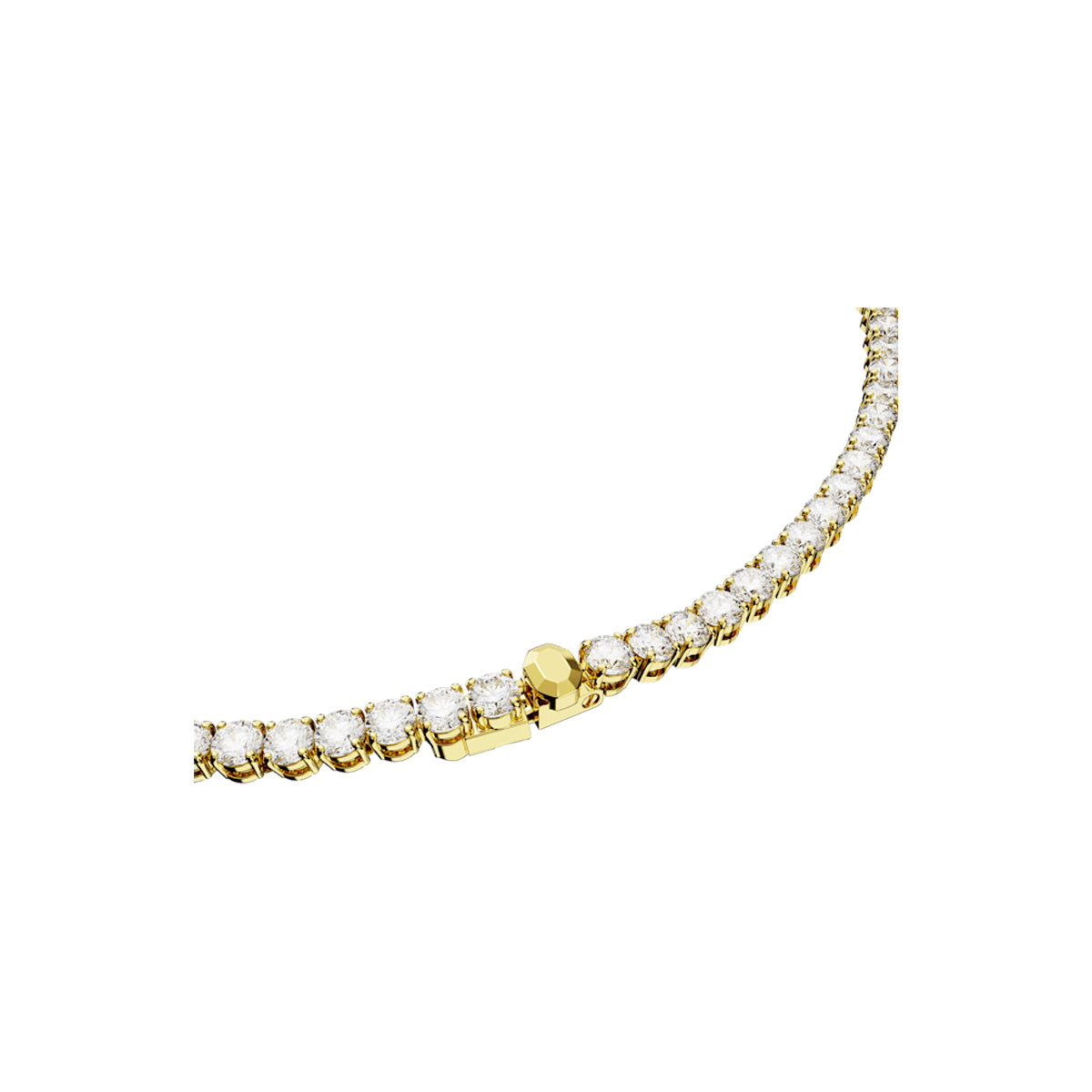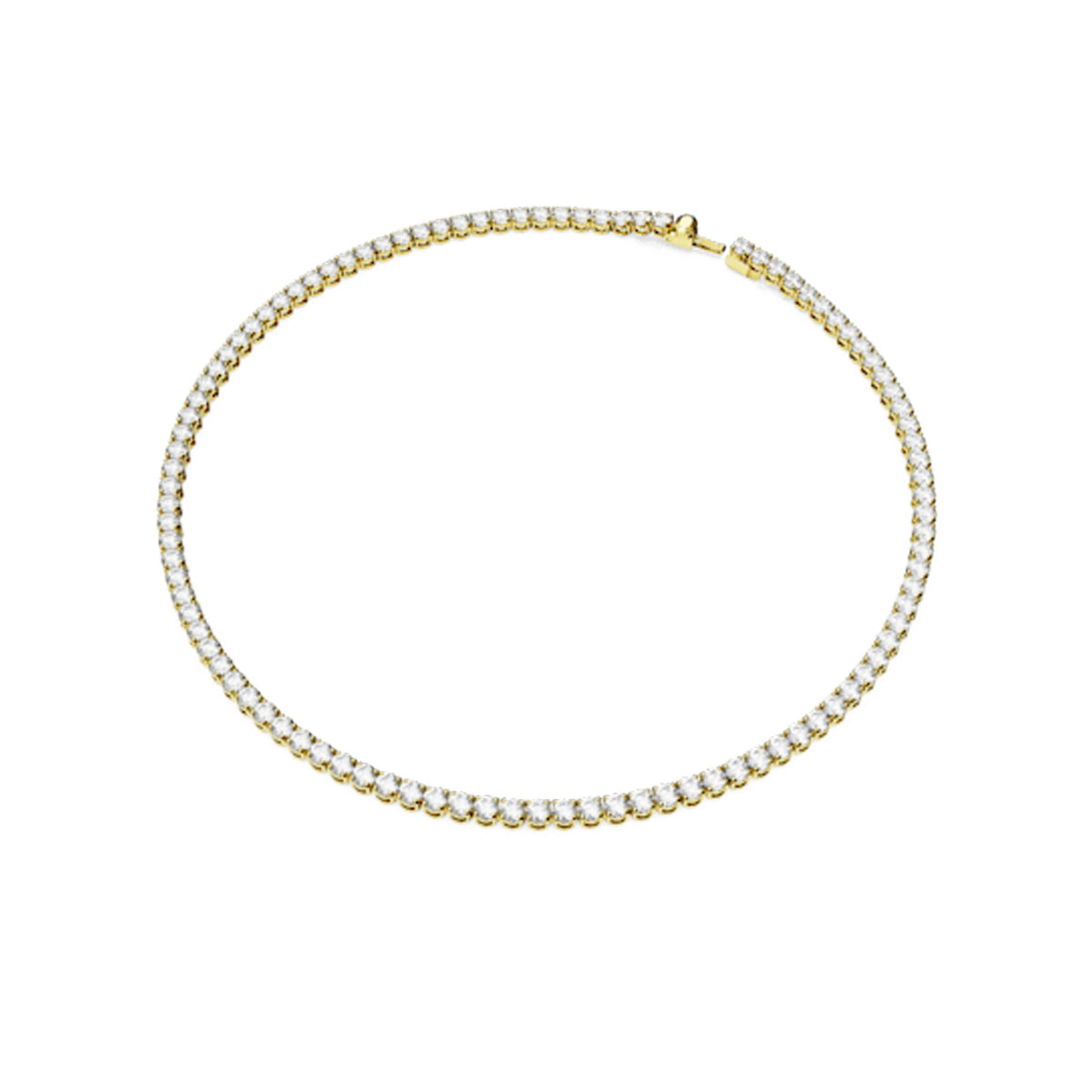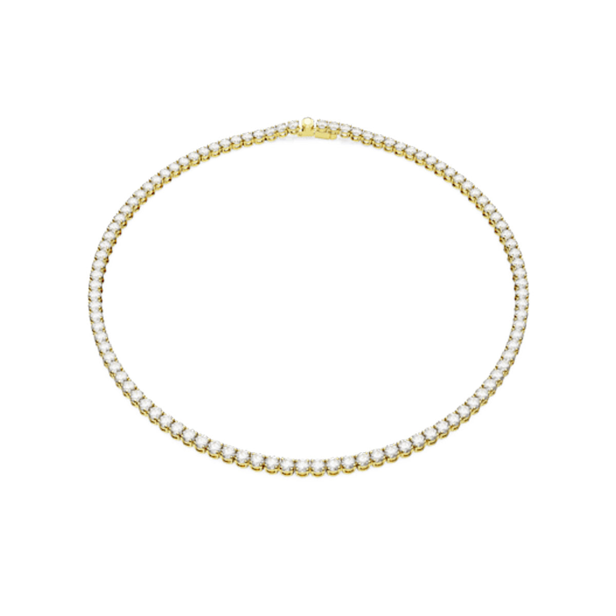 Achieving a truly resplendent look, this Matrix Tennis necklace is distinguished by the purity and elegance of its shimmering clear stones and gold-tone plated design. Each individual stone works beautifully with the next, creating an endless stream of glamour that is perfect for your everyday style. Enjoy it for yourself, or as a gift for someone special.