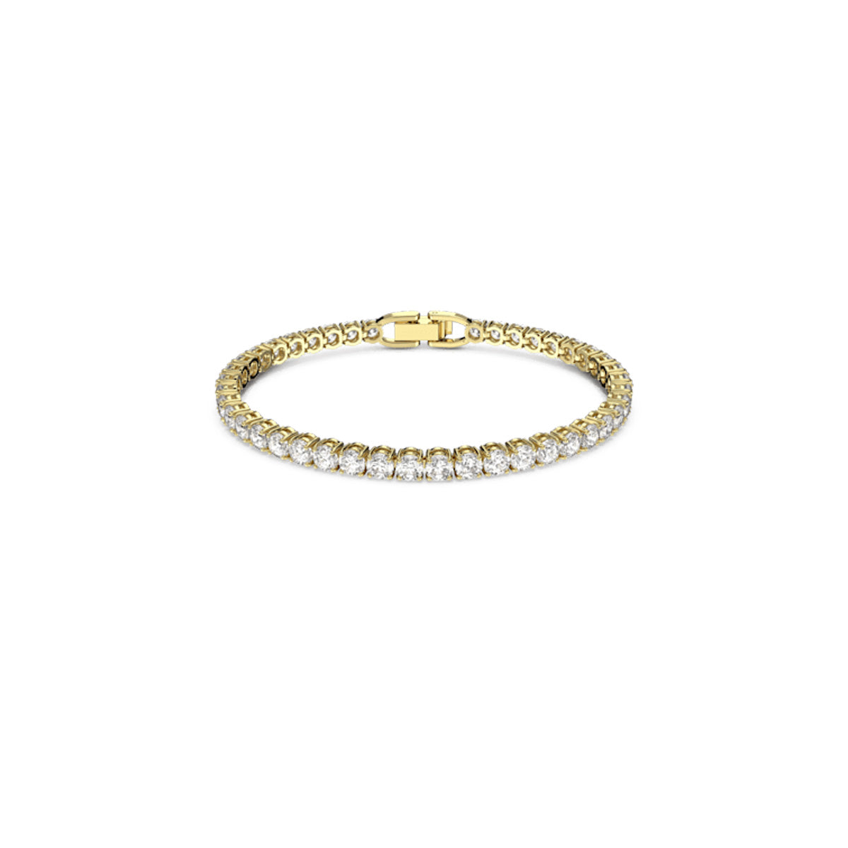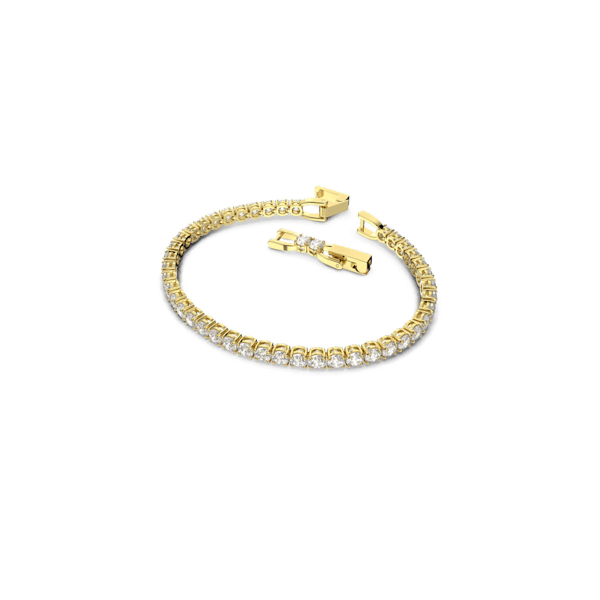This bracelet by Swarovski features an impressive yet easy-to-wear design. Vividly sparkling stones are set into the entire length of the gold-tone plated design. Timeless yet fashionable, this piece of jewellery adds a touch of glamour to everyday outfits. A charming gift giving idea.