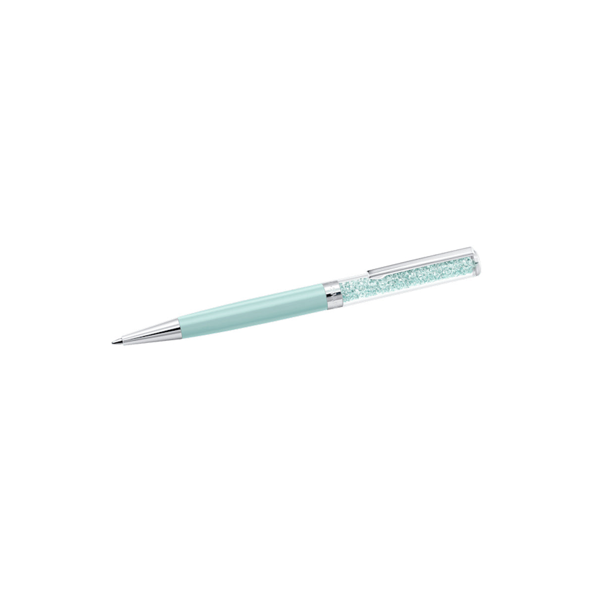 Add a touch of sparkle to everyday tasks with this new and refined edition of the Crystalline Ballpoint Pen, filled with light green crystals. Delivered in an elegant pouch, the pen features a light green lacquered metal barrel, a chrome metal clip and two Swarovski logos around the middle. The high quality ballpoint ink refill can be replaced. An ideal gift.