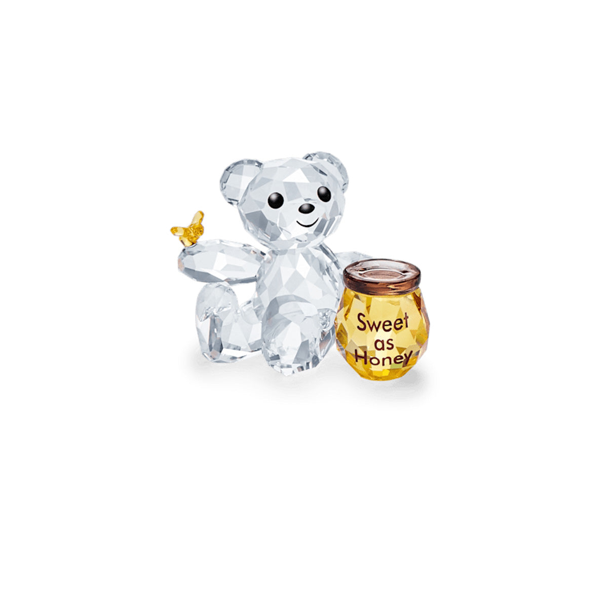 Swarovski's Kris Bears are loved by collectors all around the world. Exquisitely crafted with 449 facets, this cheerful new edition shines in clear crystal and holds a honey pot that reads 'Sweet as Honey'. A cute gift for someone special or perfect addition to your own Kris Bear collection. Decoration object. Not a toy. Not suitable for children under 15.