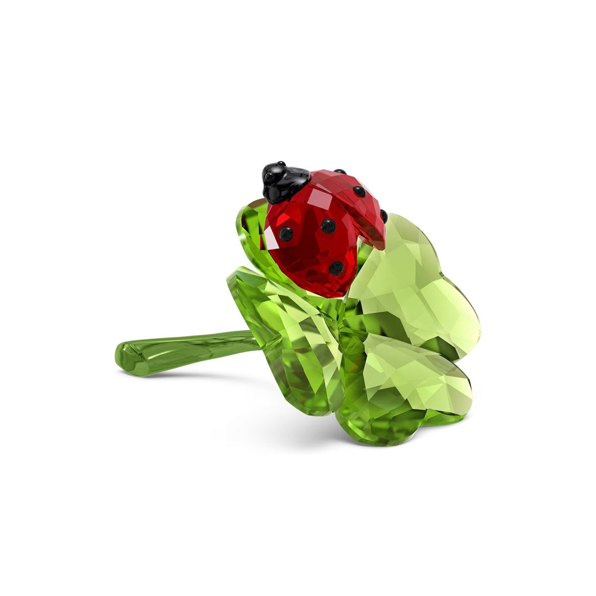 Two of nature’s smallest and cutest creations are brought to life in this unique crystallised piece. Showcasing a delicate ladybug atop a single clover, the design is crafted with 315 facets and features naturalistic colours, along with lacquered metal touches in luminous green. Add this to your home décor to serve as the ultimate symbol of luck and natural wonder. Decoration object. Not a toy. Not suitable for children under 15.