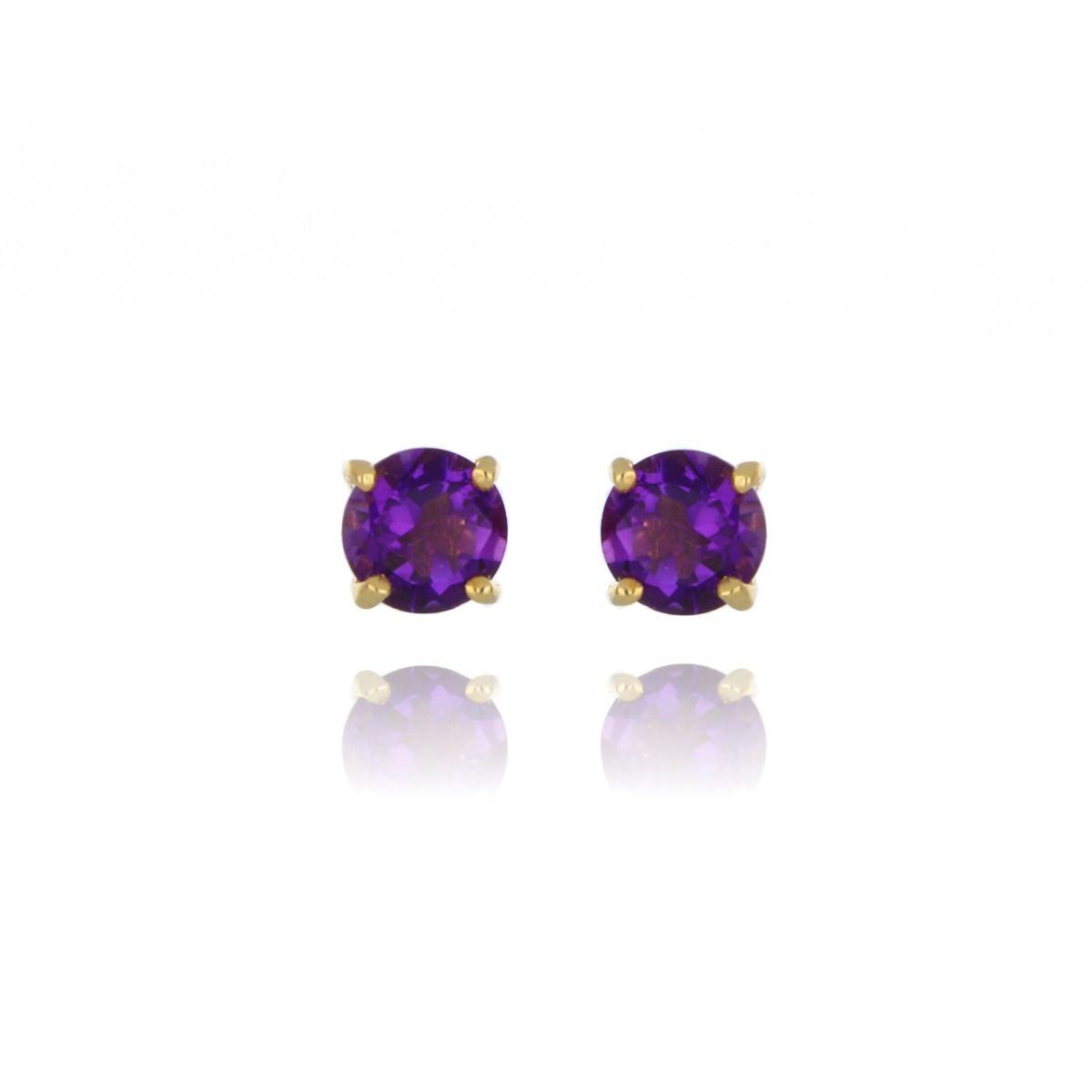 Beautiful round purple amethysts are set in 9ct yellow gold 4 claw settings to make these simple yet stunning earrings.