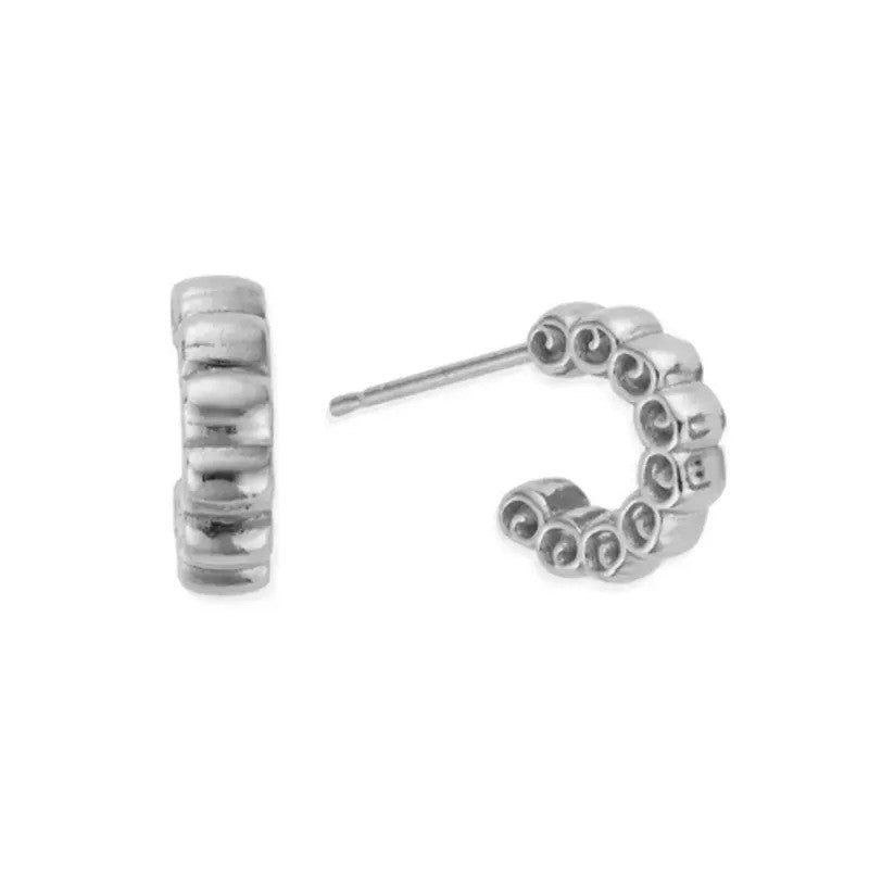 Inspired by intricate Parisian architecture, add ChloBo’s sleek huggie hoops to your ear stack and refresh your look this season! Featuring ornate swirls, these dainty sterling silver hoops will add a little texture to your everyday style.